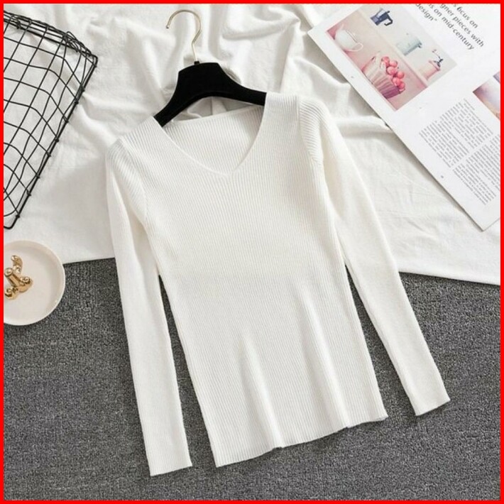 Atasan Rajut Wanita V Neck Baju Rajut Wanita Kaos Import Wanita