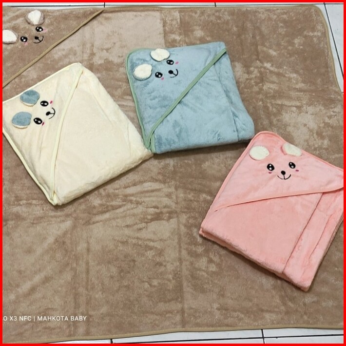 Selimut Bayi Topi Bulu Lembut Cotton Polos Sni Ukuran 90x90cm