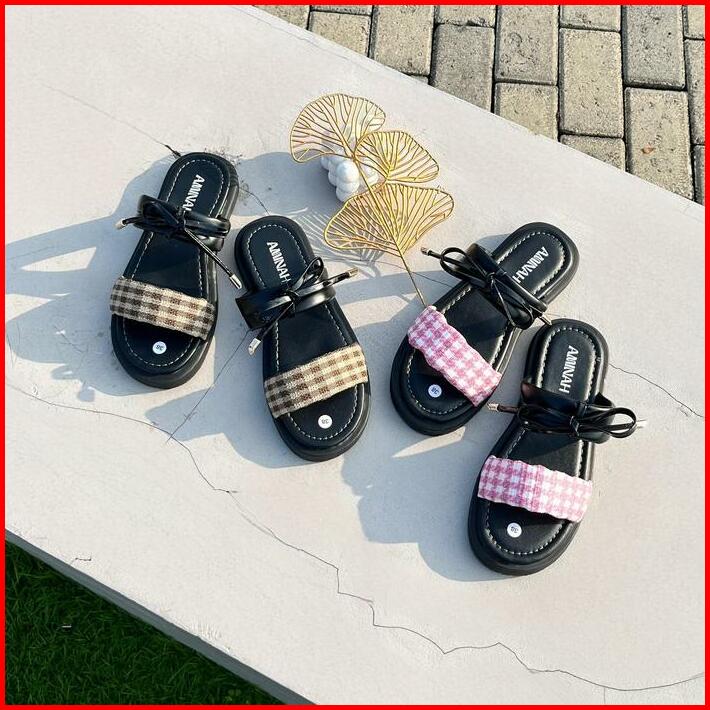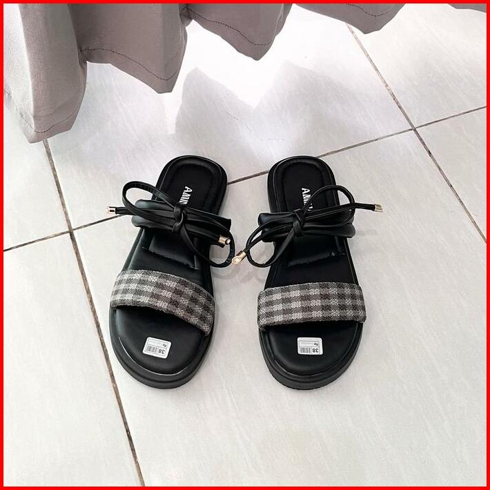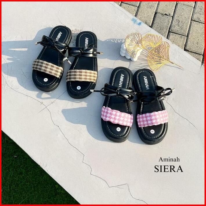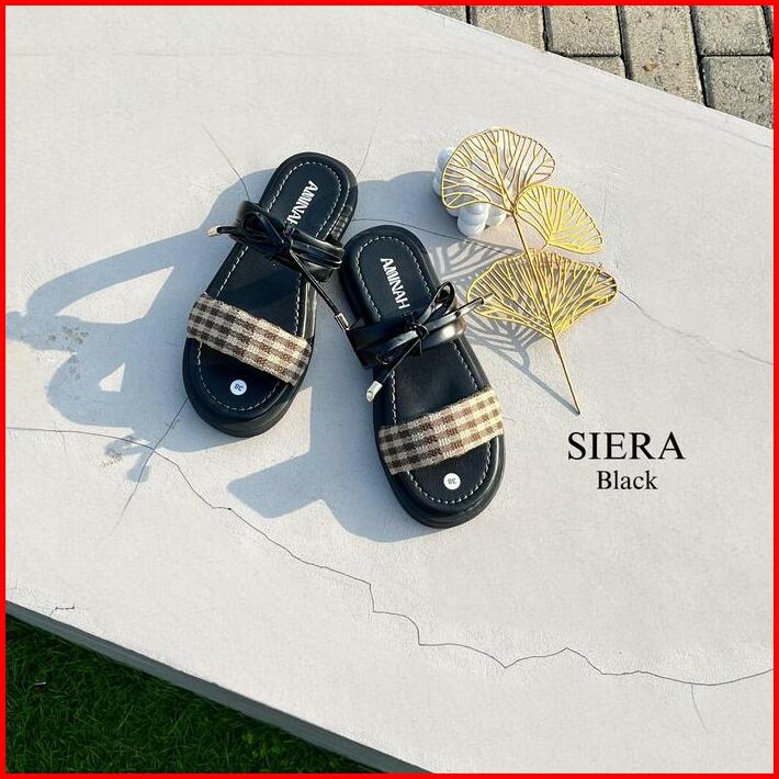 Aminah Siera Black Sendal Wanita Slop Premium Lucu Sandal Kekinian