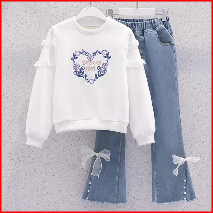 Setelan Sweater Dan Celana Cutbray Anak Perempuan Usia 1-10 Tahun Stelan Jeans Anak Perempuan Terbaru