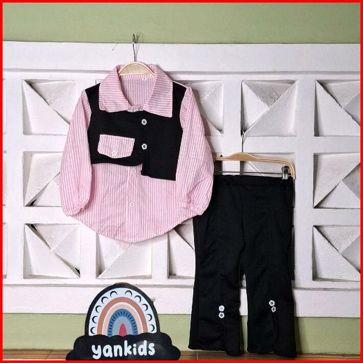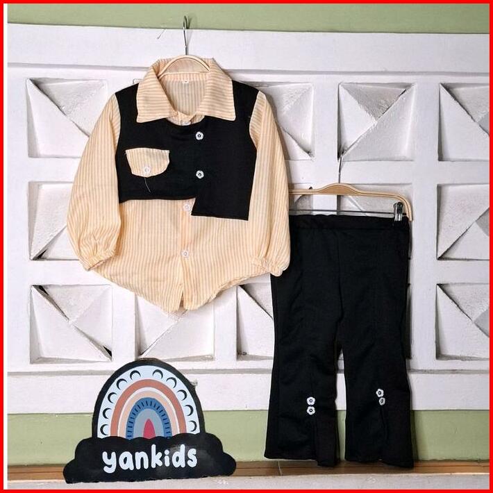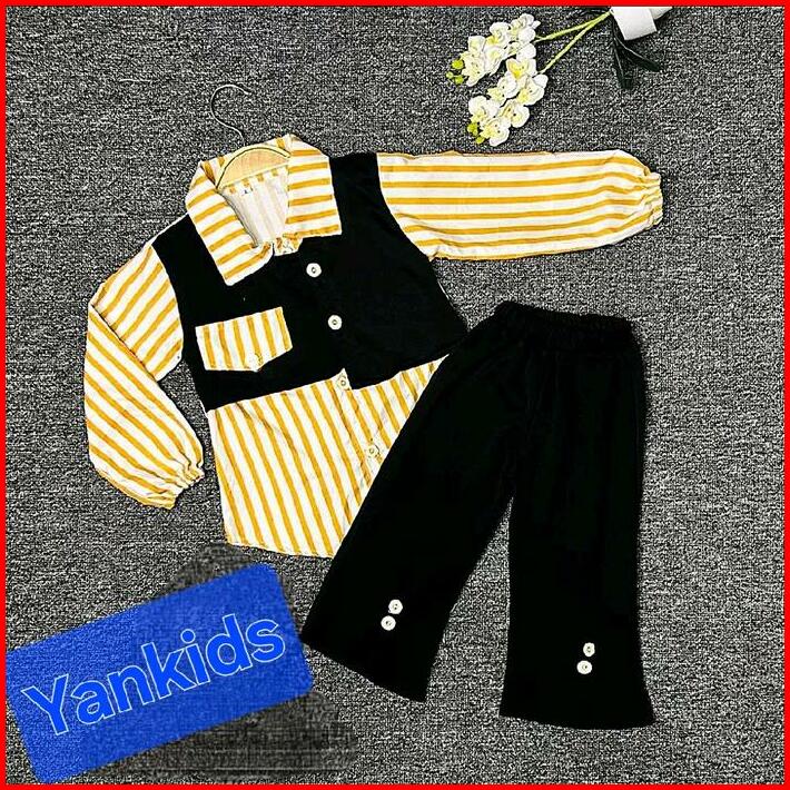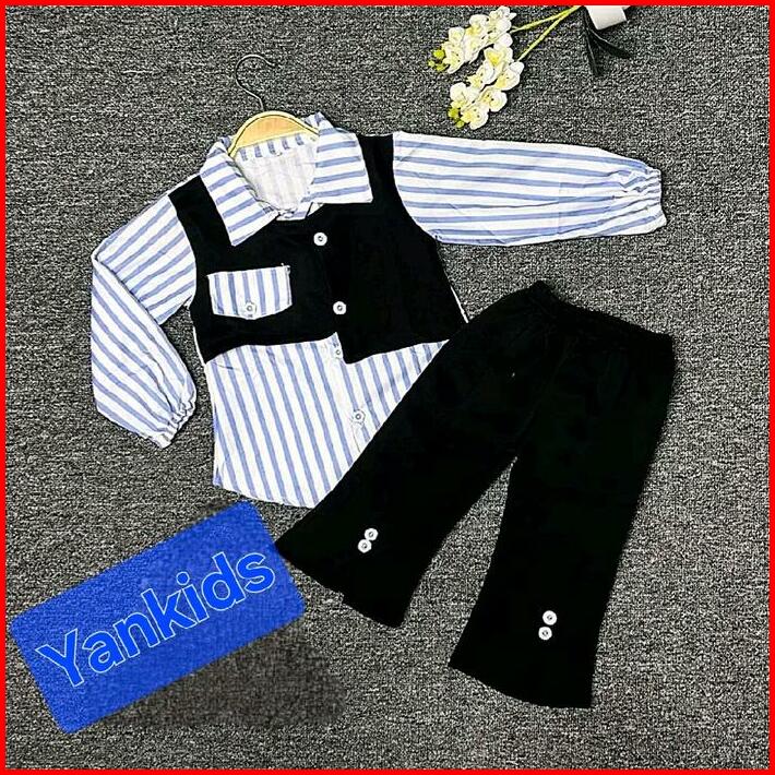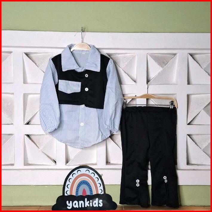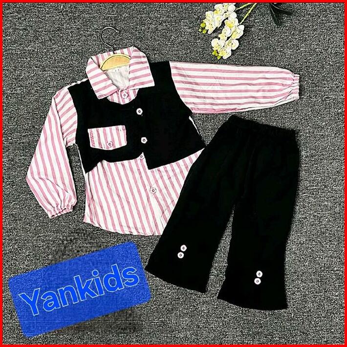 Setelan Anak Perempuan 3in1 Salur Rompi Cutbray Scuba 2-10 Tahun Fashion