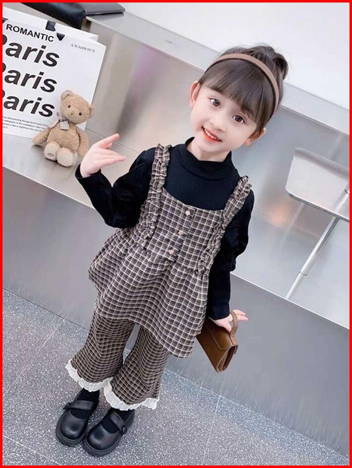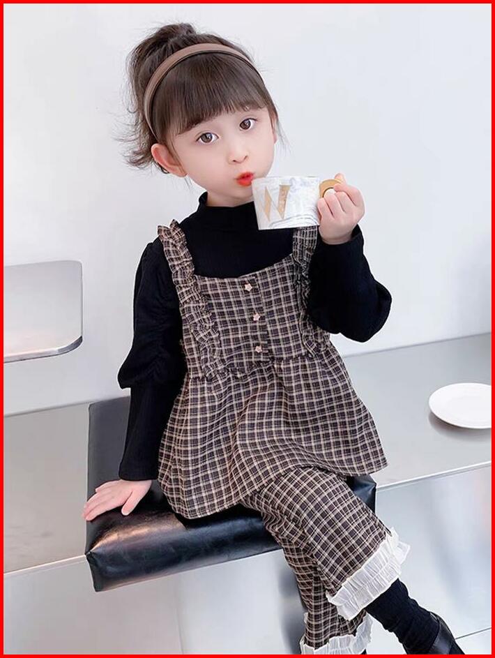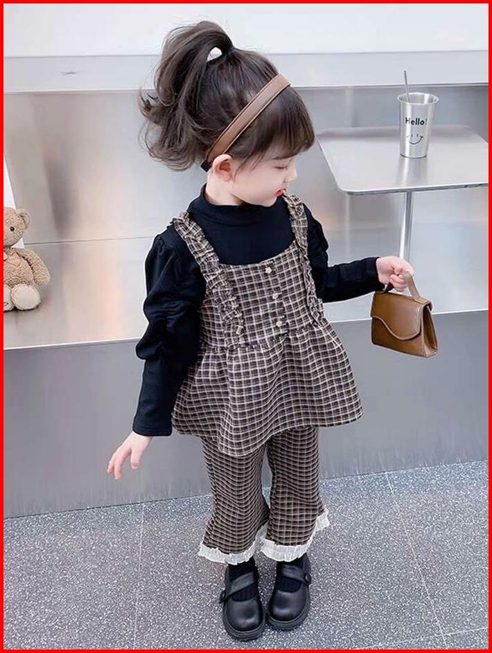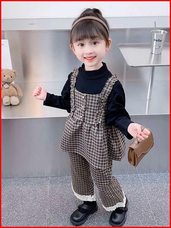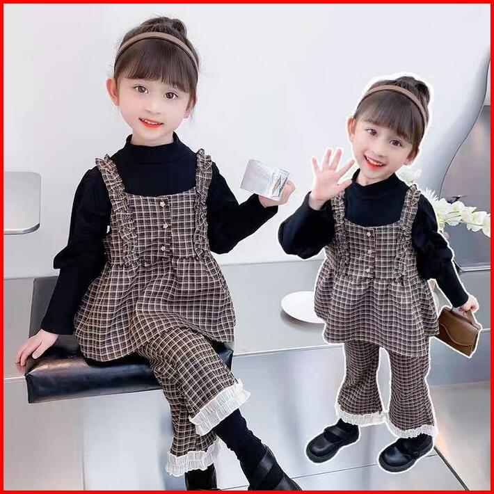 Angenius Setelan Baju Atasan Kaos Lengan Panjang Anak Perempuan Katun O-neck 3in1 Outer Katun Motif Celana Panjang Katun