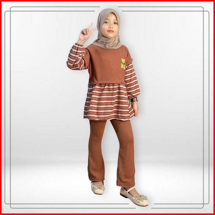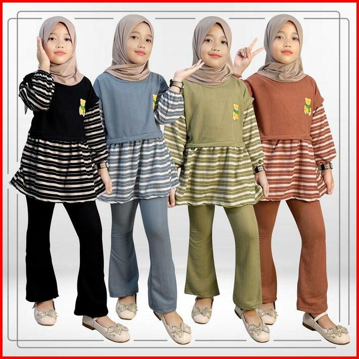 Setelan Celana Cutbray Anak Violy Gogofashion 798 Bahan Knit Salur
