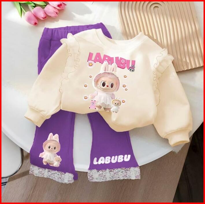 Setelan Labubu Anak Perempuan Celana Cutbray 1-5 Tahun Viral Bahan Babyterry Premium Korea One Set Korean Style Cewek Pa