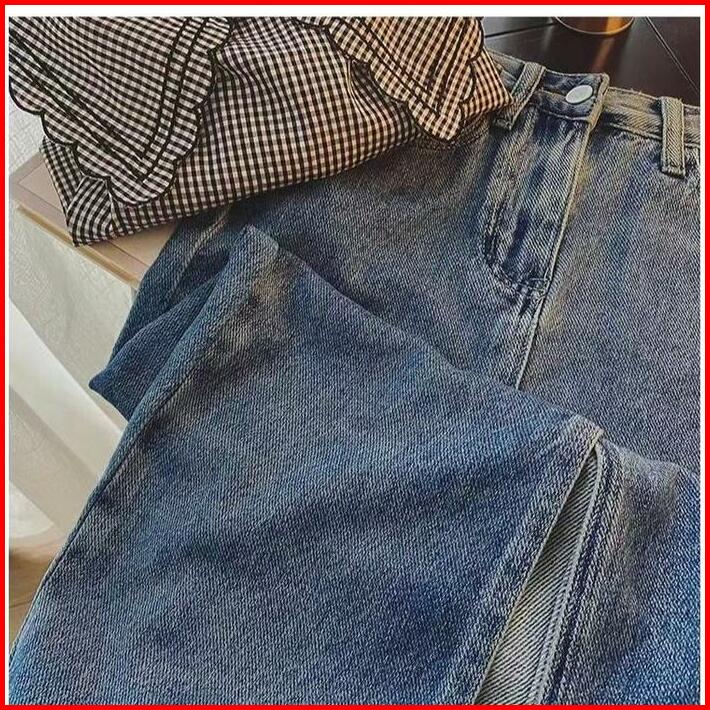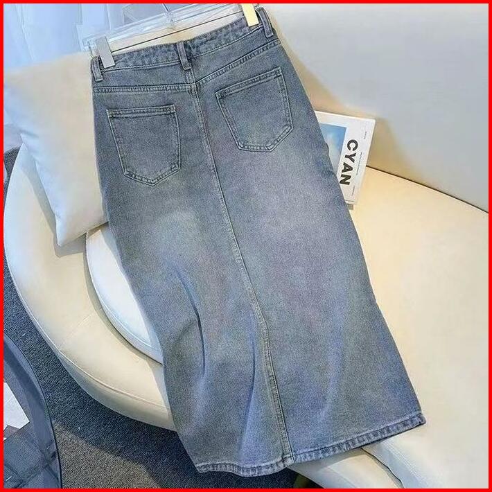 Pinkgirl.idrok Jeans Jumbo S 5xl Rok Korean Style Wanita Rok Belah Tengah Rok Denim Panjang 7 8 A Line Highwaist Skirt W
