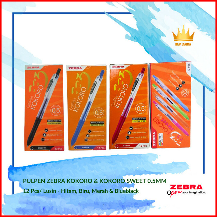 Pulpen Gel Zebra Kokoro Sweet Kokoro 0.5 Mm Hitam Biru Merah Blue Black
