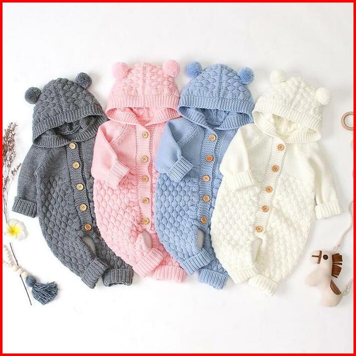 Jumper Bayi Baby Romper Baju Bayi Newborn Rajut Tebal Magra Kancing