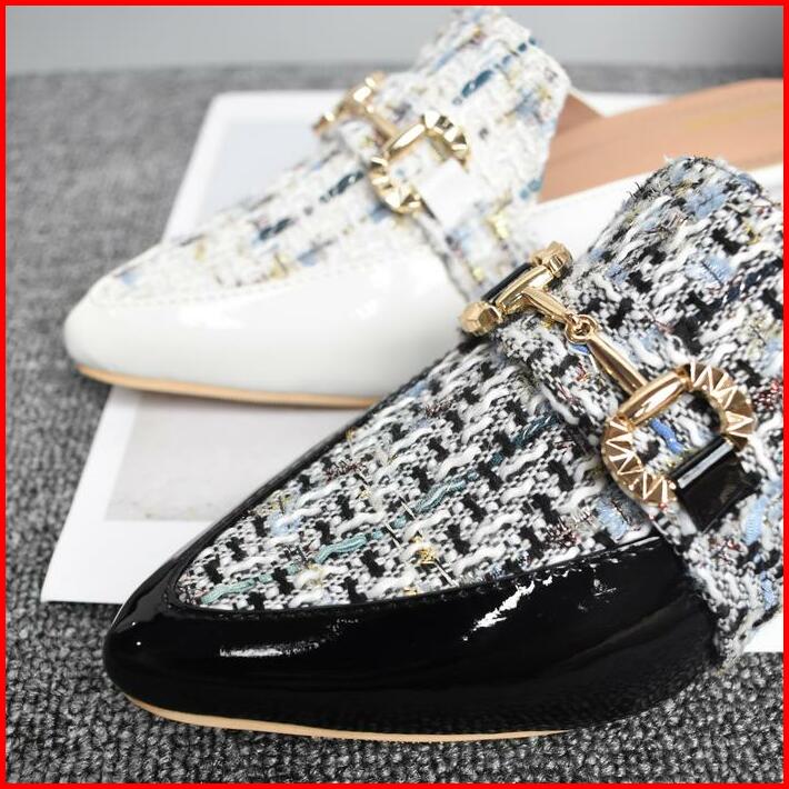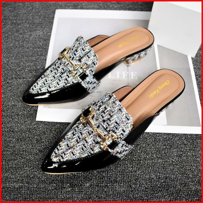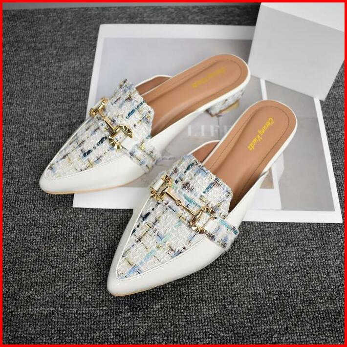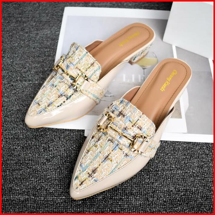 Cheung Kuedz Niken Sandal Slop Mules Wanita 3 Cm Bahan Canvas Sol Karet Shoes