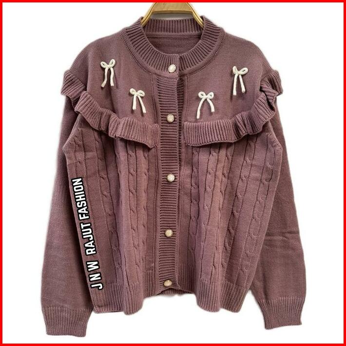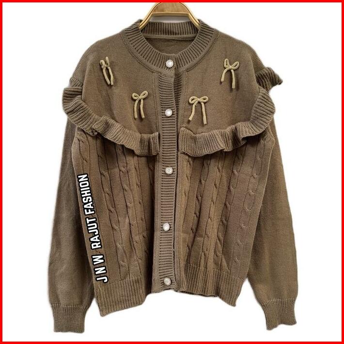 Dianra Cardigan Knitwear Ruffle Pita Cablle Atasan Baju Rajut Wanita Lengan Panjang Cardigan Korea