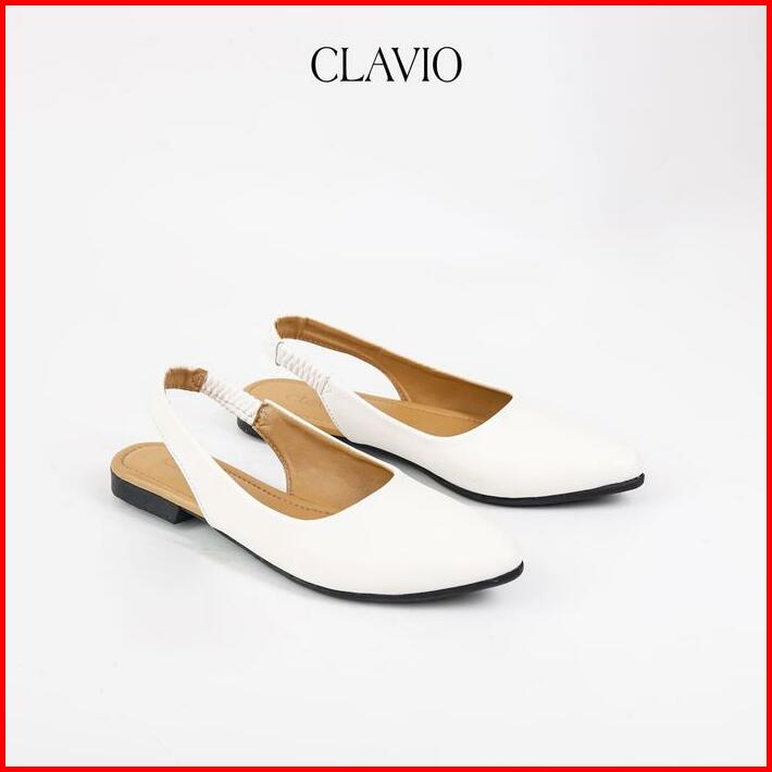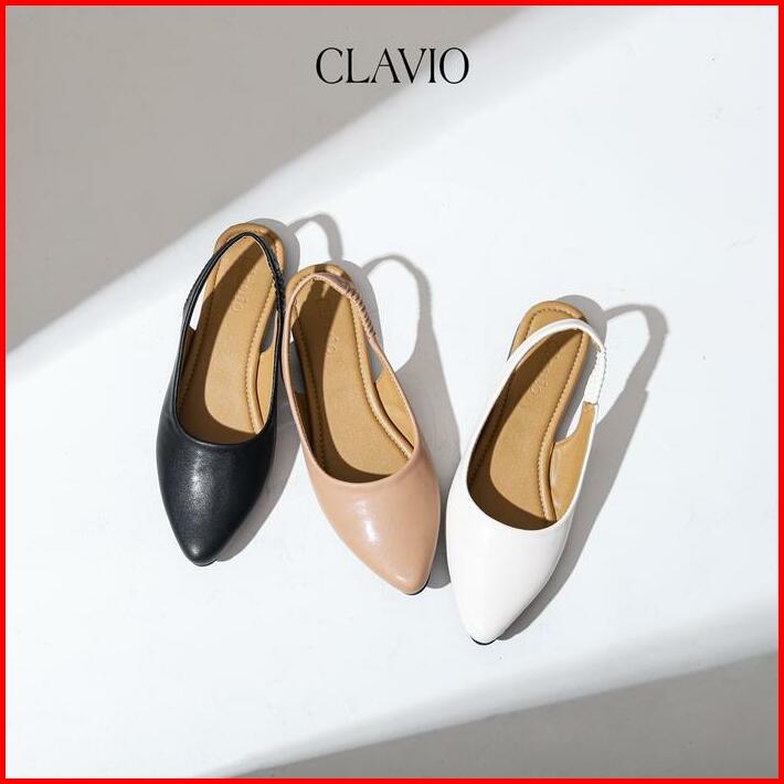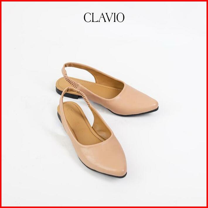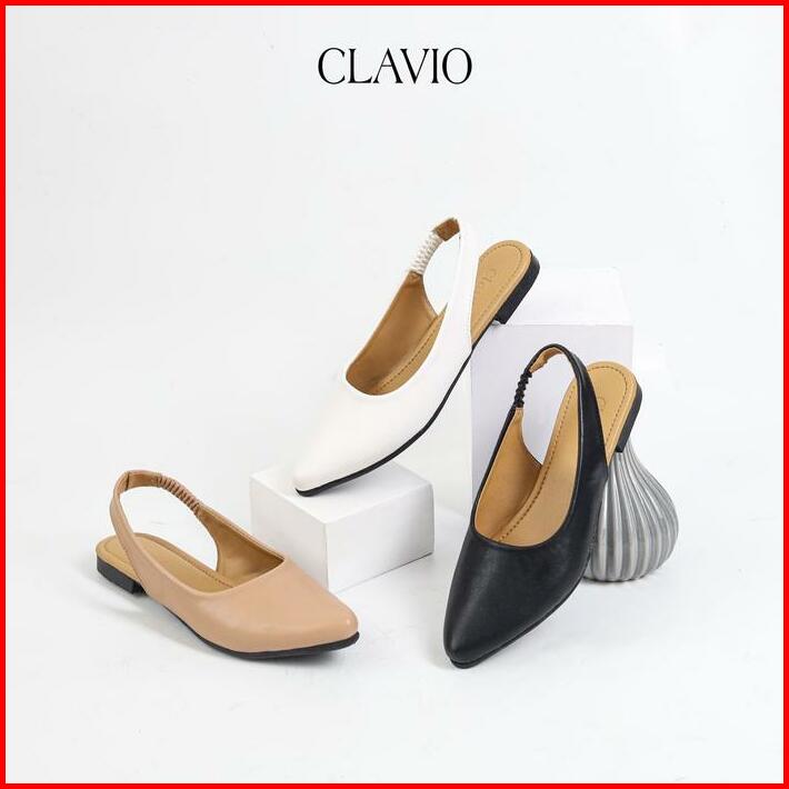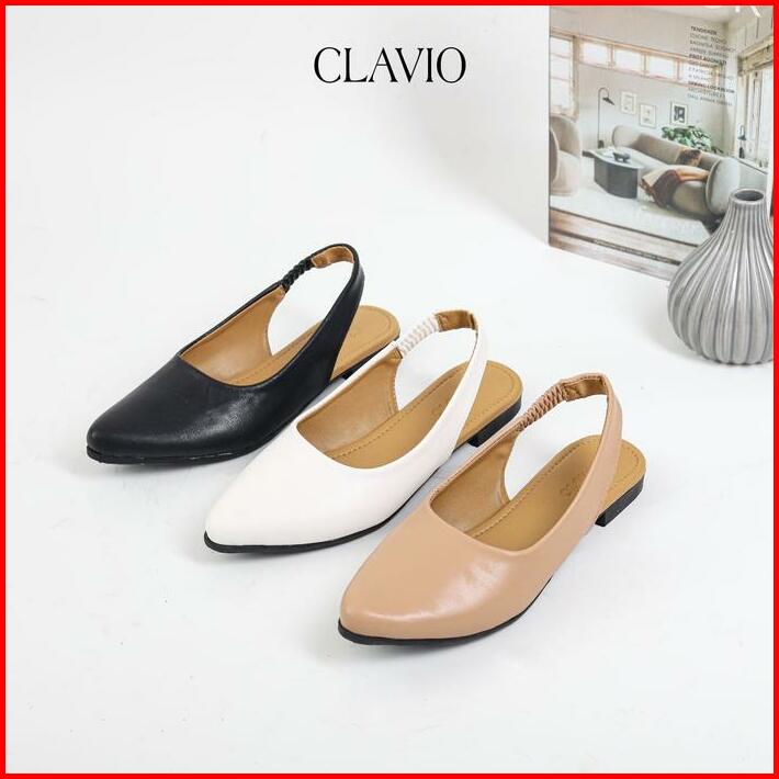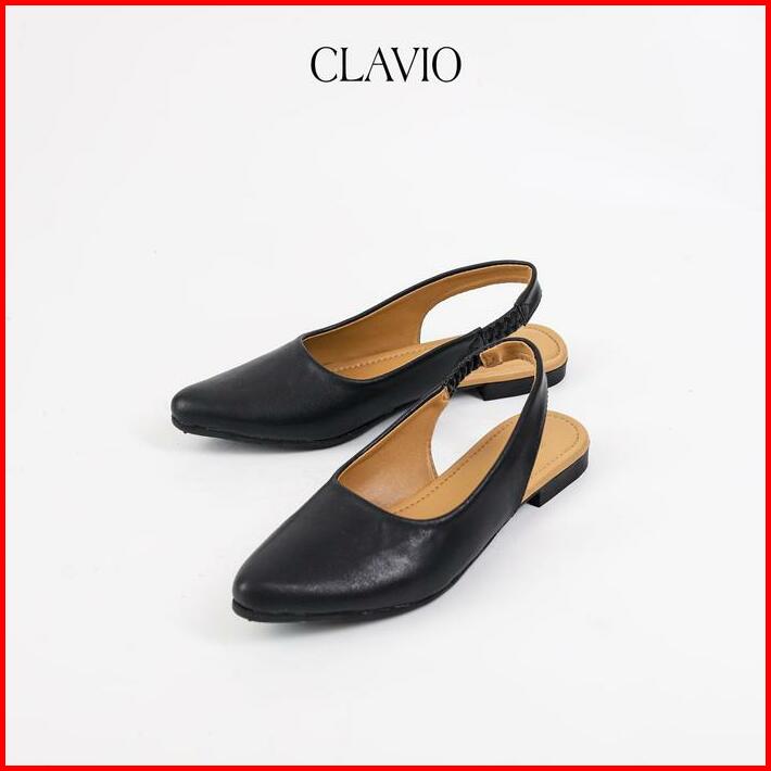 Clavio Adelia Sepatu Flatshoes Wanita Tali Karet Belakang Hitam Shoes Black Flat Kerja