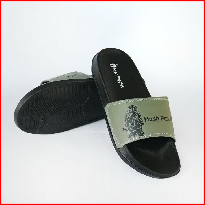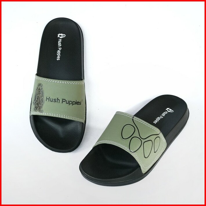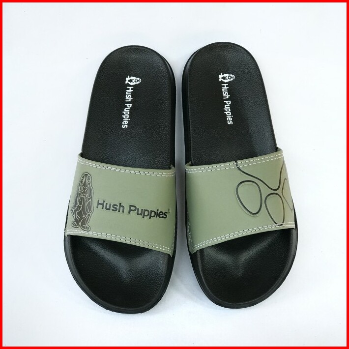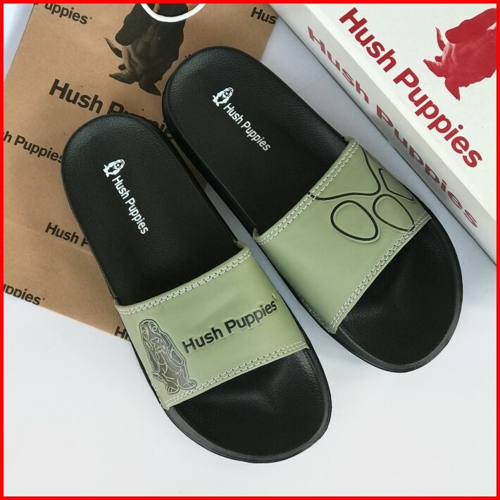 Sandal Hush Puppies Olive Black Big Logo Sandal Slop Pria Terbaru