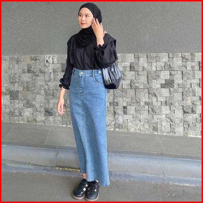 Orimoza Rok Jeans Skirt Theana Wanita Panjang Kancing