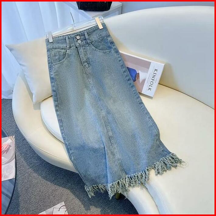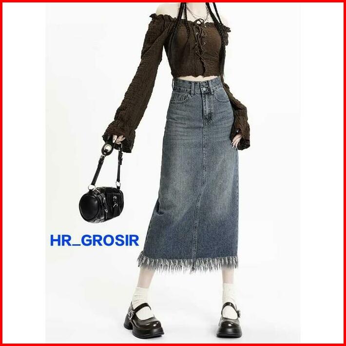 Rok 7 9 Bahan Setrit Model Rumbai Fashion Distro Jeans Midi
