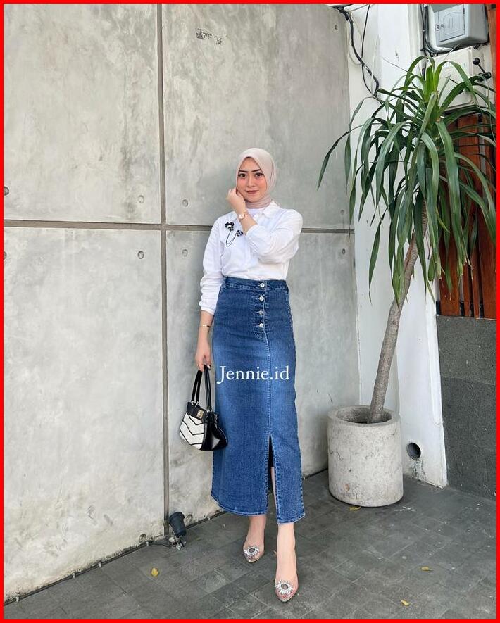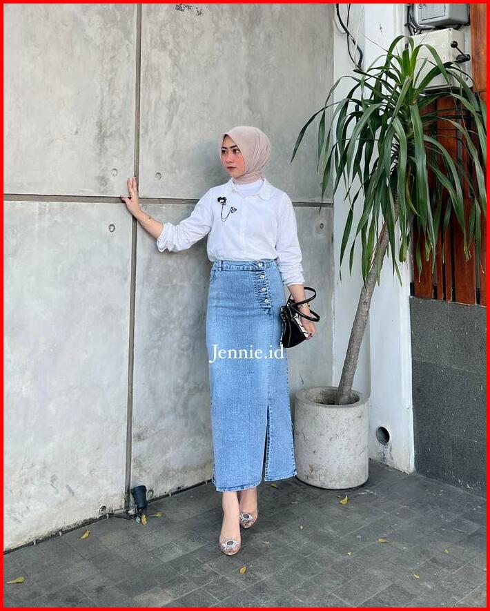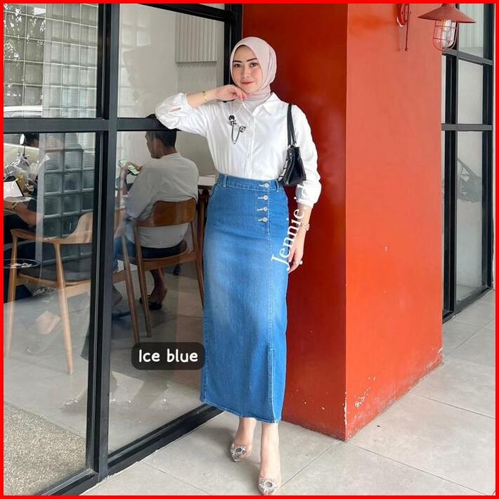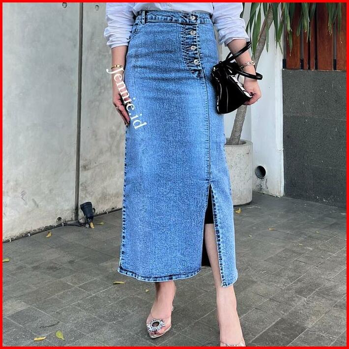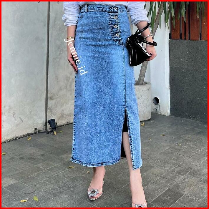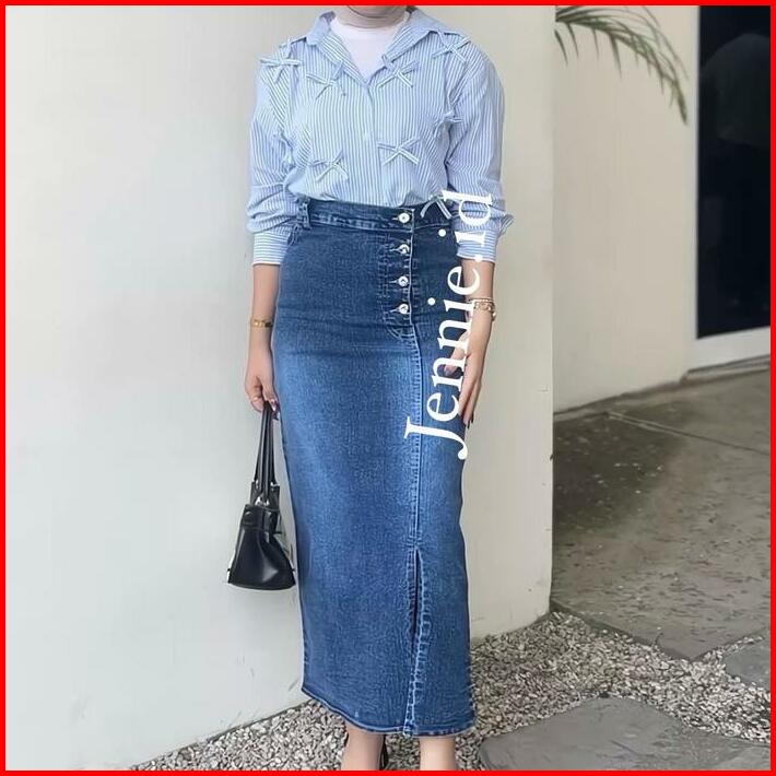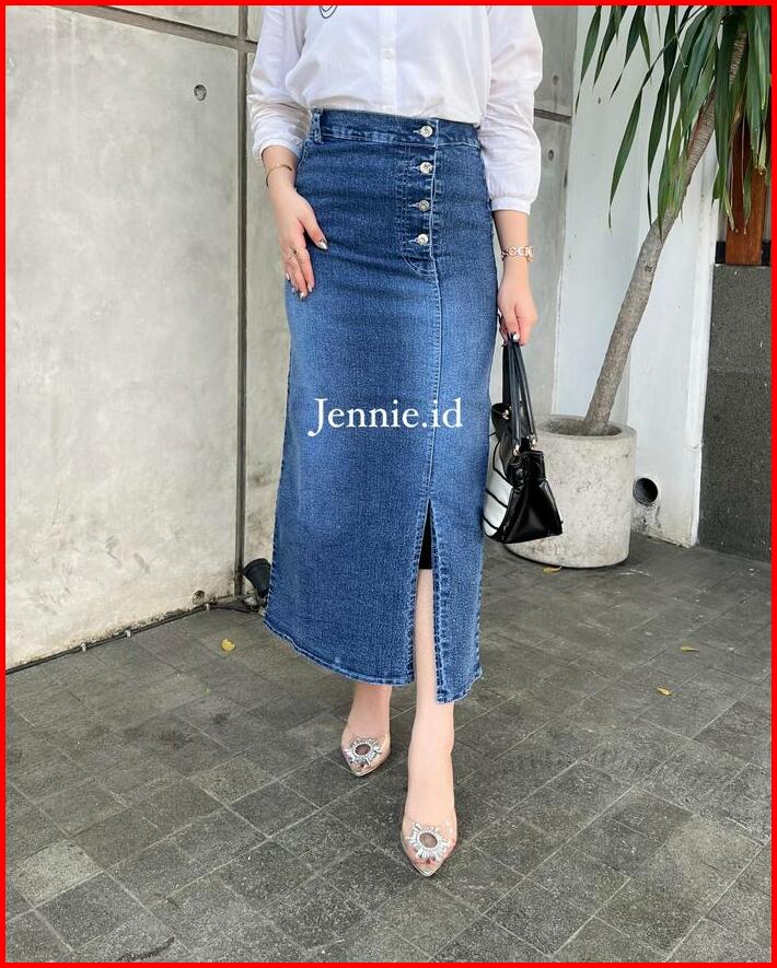 Kamila Rok Jeans Kancing Belah Samping Style Denim Casual Premium