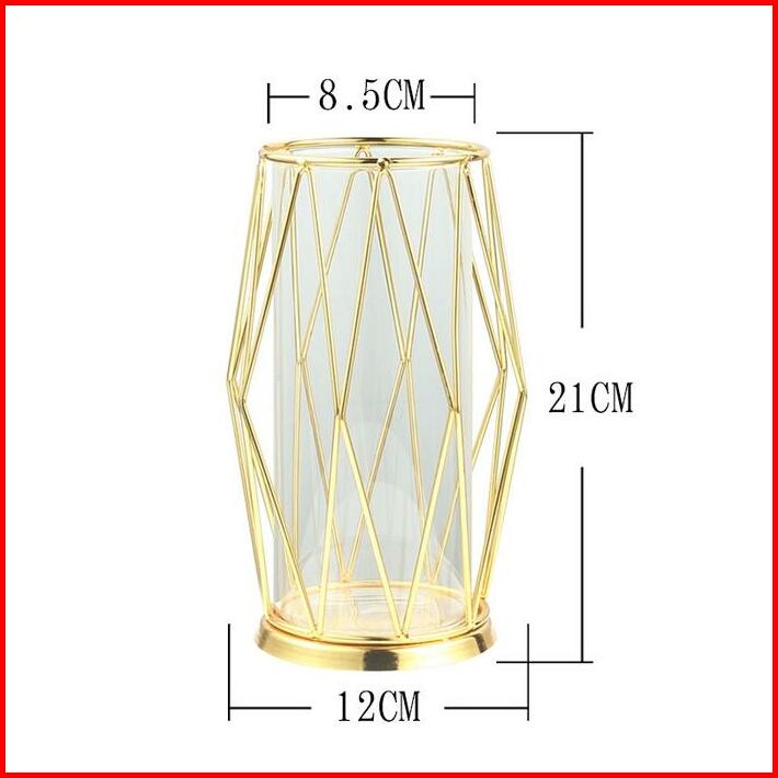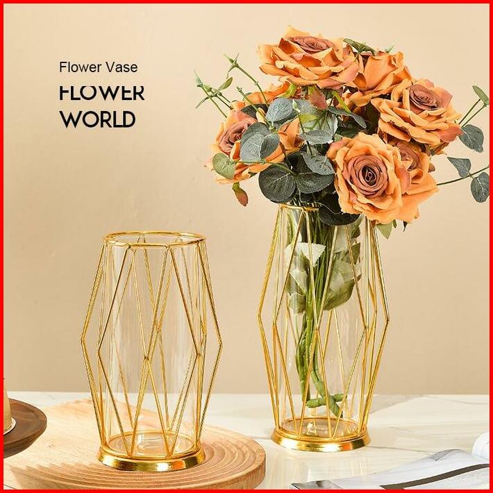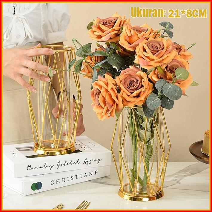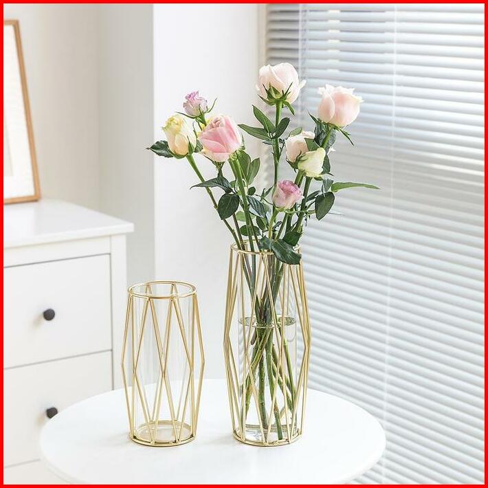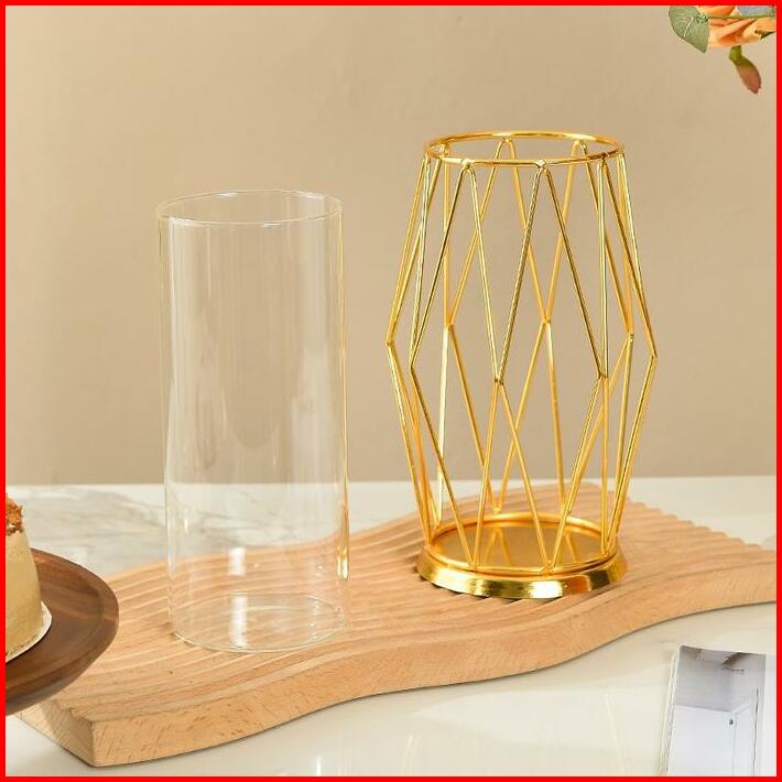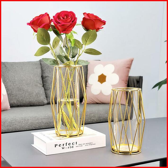 Optivia Dekorasi Meja Vas Besi Belah Ketupat Ringan Dekorasi Vas Bunga Tabung Reaksi Kaca Hidroponik Light Luxury Diamon