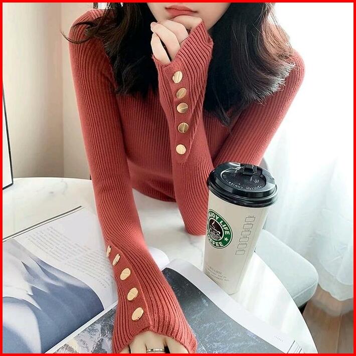 Blouse Korea Inner Rajut Inara Kancing 4 Atasan Baju Press Body Slim Fitting Knitwear Wanita Top Panjang Manset Inara Ou