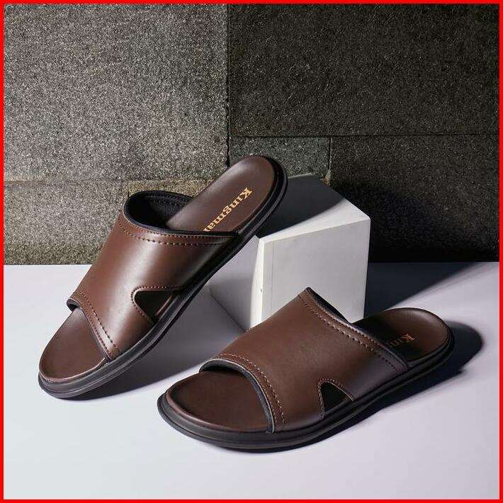 Kingman Sendal Pria Casual Kekinian Model Orlando Sendal Jepit Hangout Cowok Kulit Kualitas Premium
