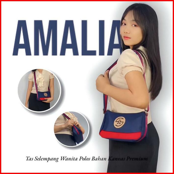 Selempang Amalia Tas Selempang Wanita Dd-18 - Slingbag Polos Bahan Kanvas Tebal Simpel Muat Dompet Lipat Hp Lipstick Bed
