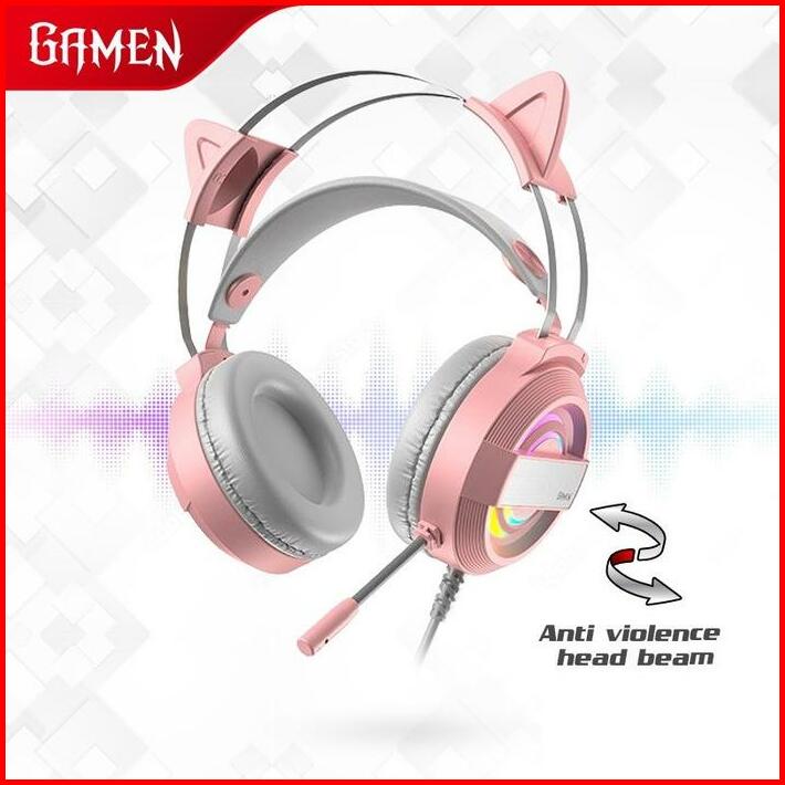 Gamen Headphone Gaming Cat Ear Gh1100 Pink Led Rgb Lighting Original Bass