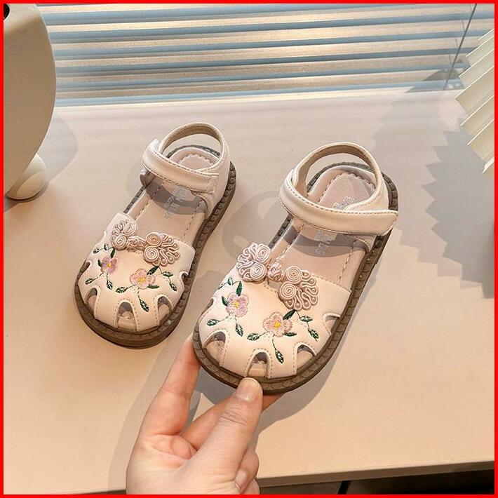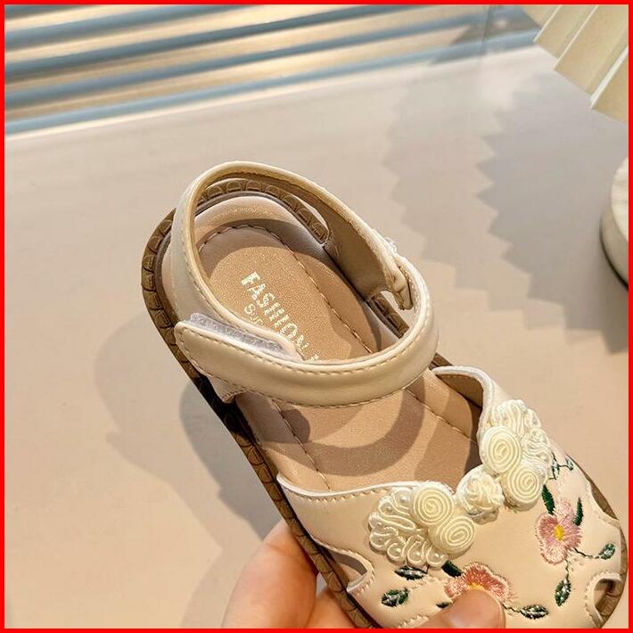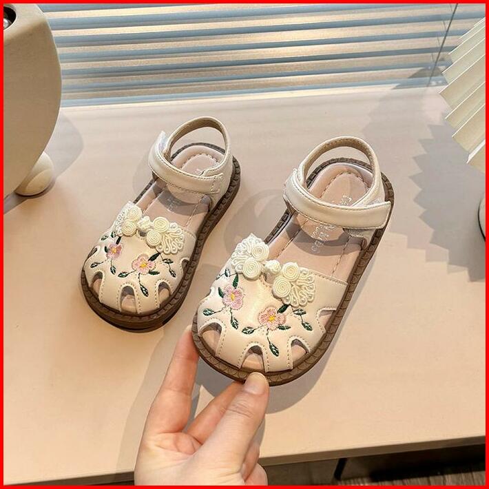 Sandal Kulit Ikatan Simpul Gaya Kuno Untuk Bayi Perempuan Sepatu Anak Antilicin Sol Lembut Bunga Bordir Bunga Antik 2-12