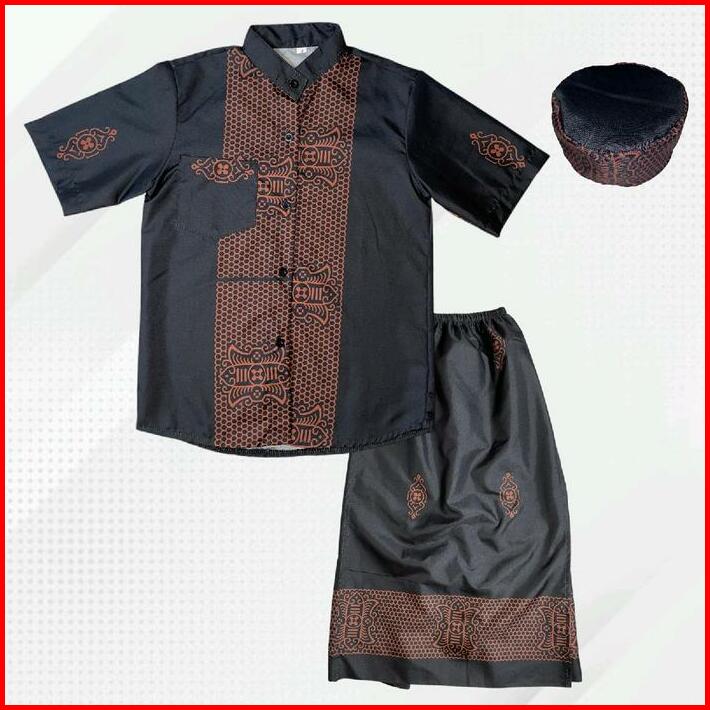 Stelan Baju Muslim Koko Laki-laki Sarkoci Usia 3-10 Tahun Motif Batik Gus Iqdam Katun Premium Setelan Set El Ankoko Anak