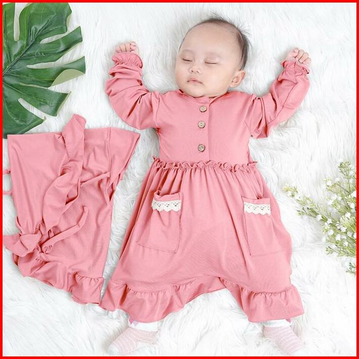 Kidsweer-gamis Bayi Perempuan Almeera 0-18 Bulan 6-12 Bln Baju Muslim Anak Free Hijab