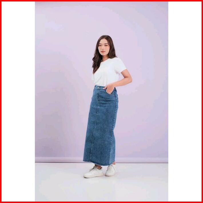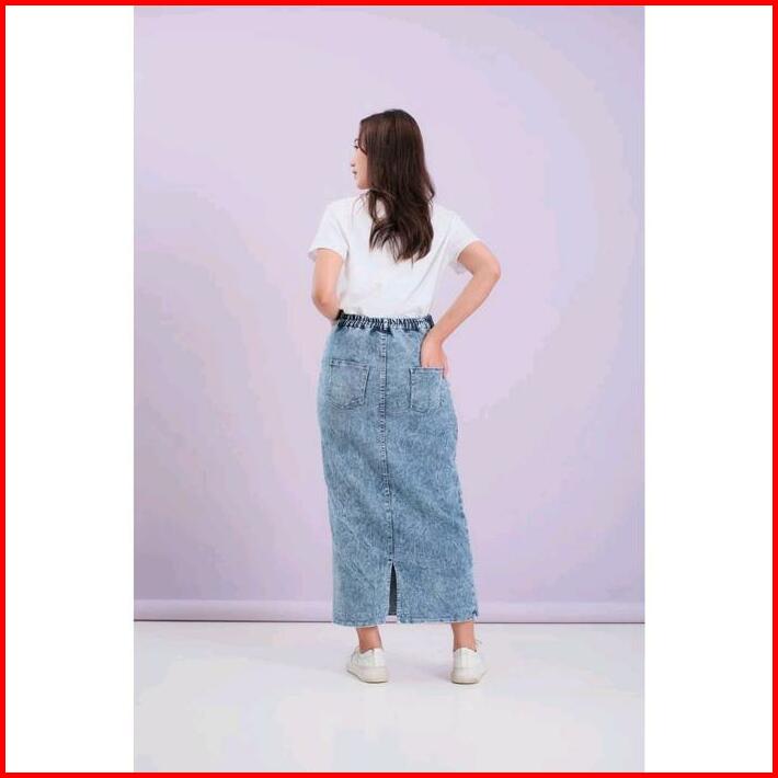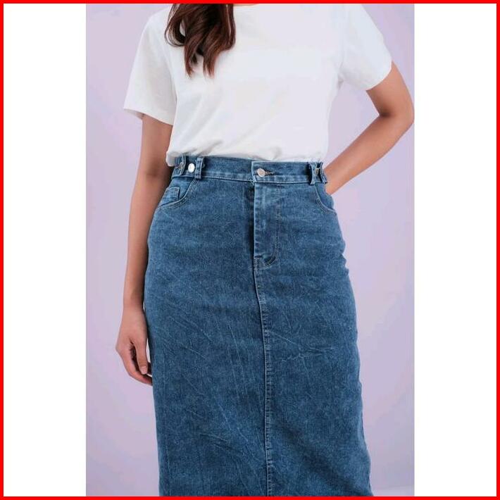 Dev Denim Rok Jeans Skirt Theana Wanita Rok Girl Kancing Karet Tebal Nyaman Rok Sobek Samping
