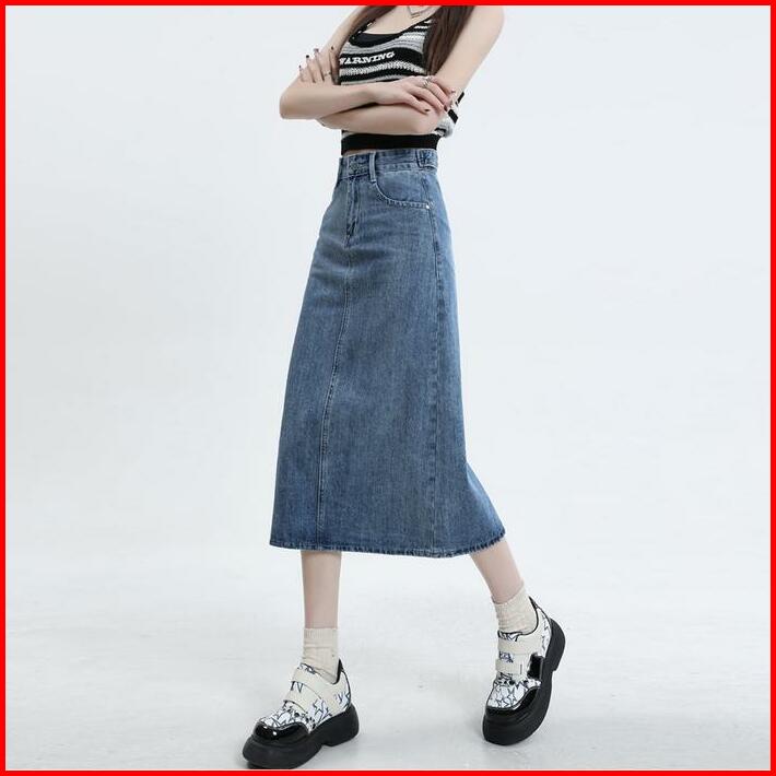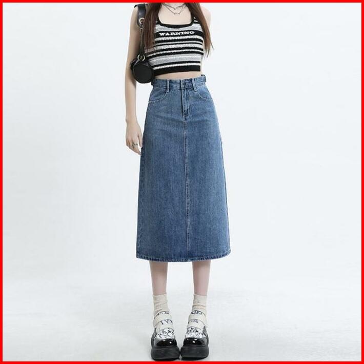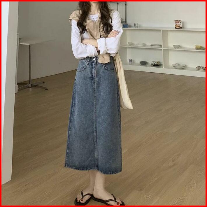 Rok Jeans Span Panjang Wanita Rok Ala Korea Panjang Rok Cewek Kekinian Rok Polos Premium Rok Midi Korea Rok A Line Midi