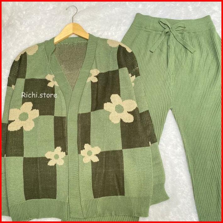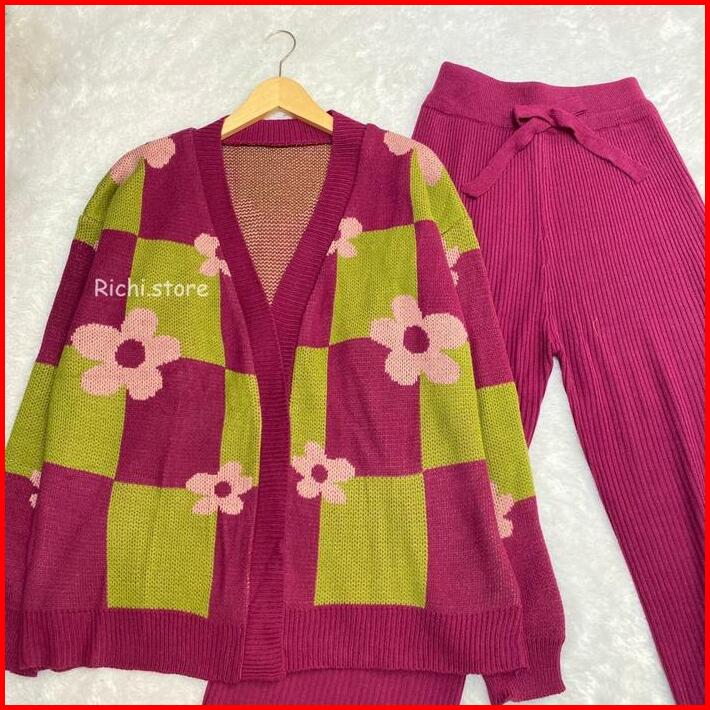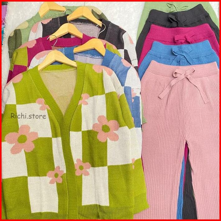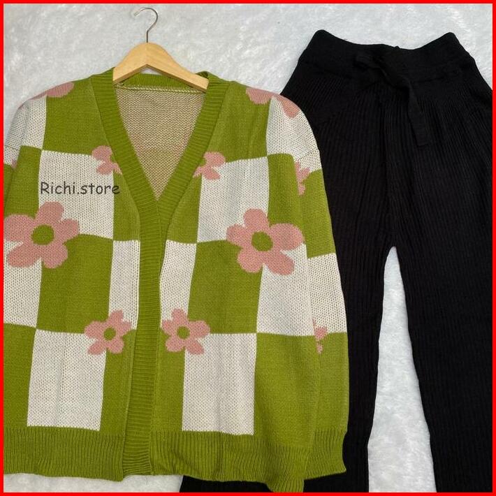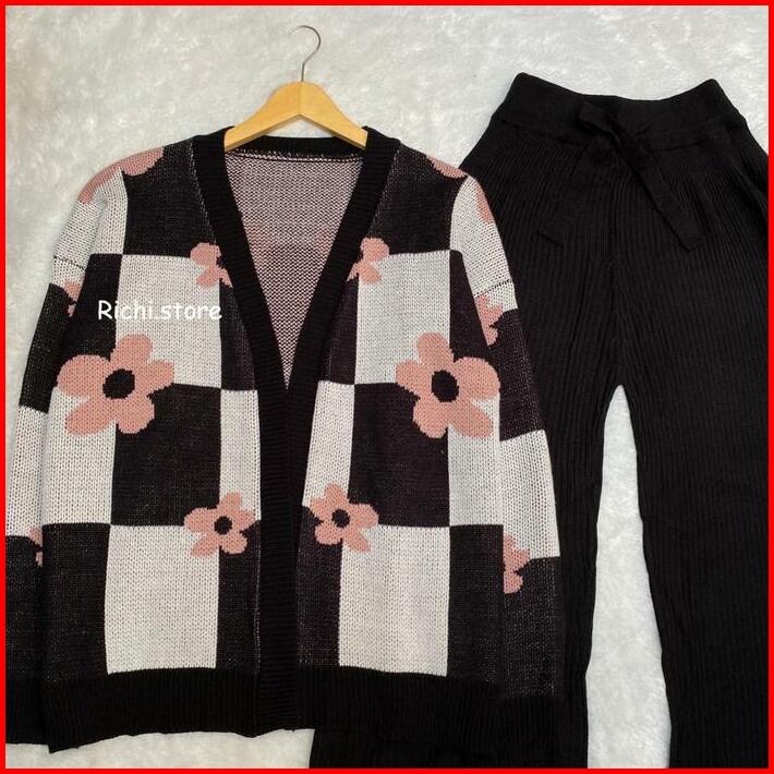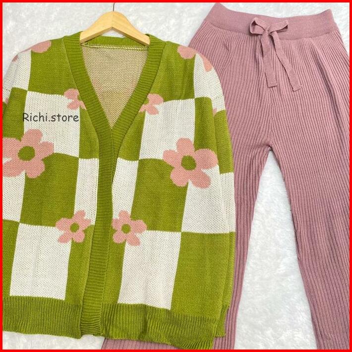 One Set Rajut Camelia Outer Baju Celana Kulot