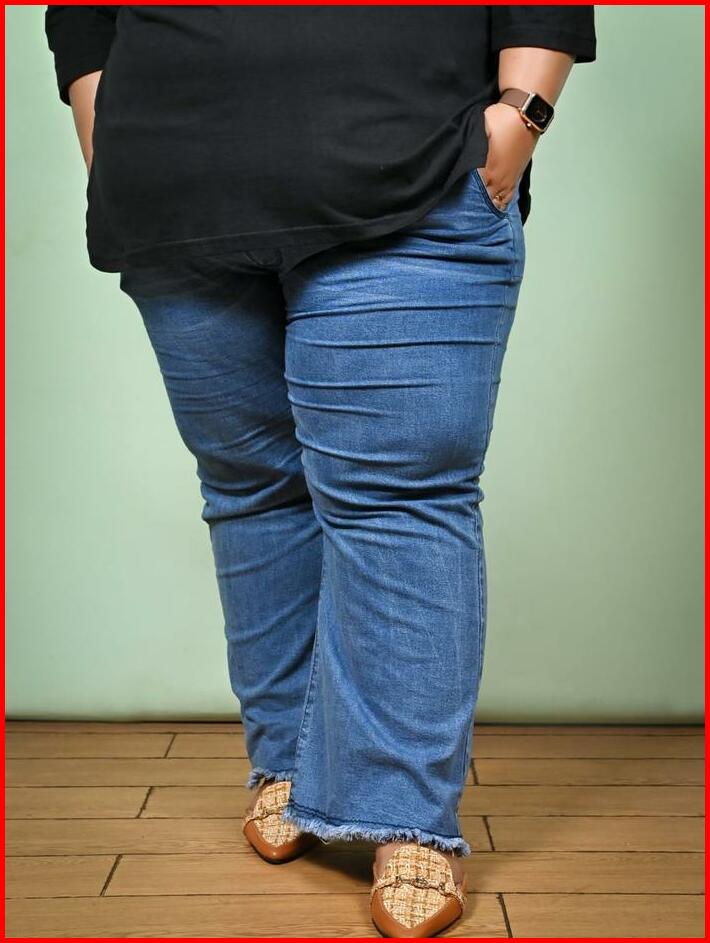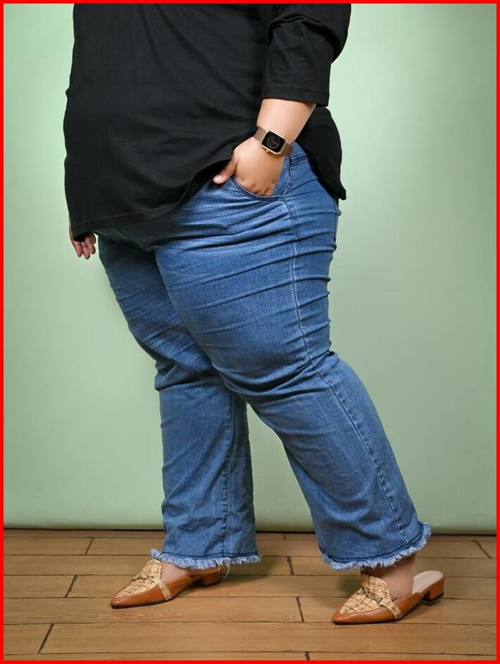 Bintangrzt Bb 150kg Muat Celana Jeans Cutbray Super Jumbo Bahan Jeans Melar Panjang Stretch Karet Tebal Soft Wanita