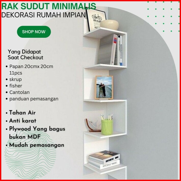 Rak Sudut Rumah Kamar Dinding Tempel Rak Buku Bunga Kosmetik Serbaguna