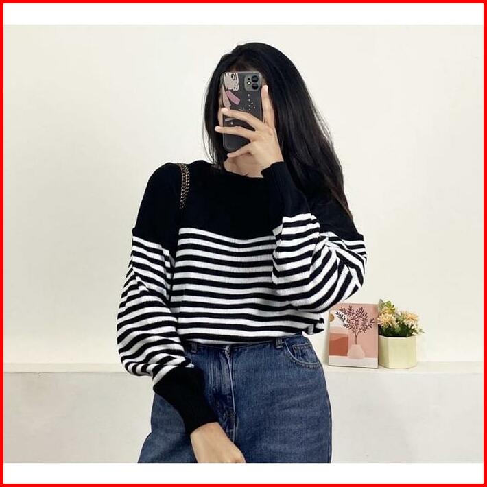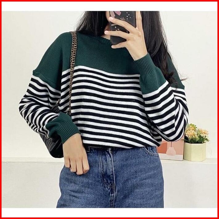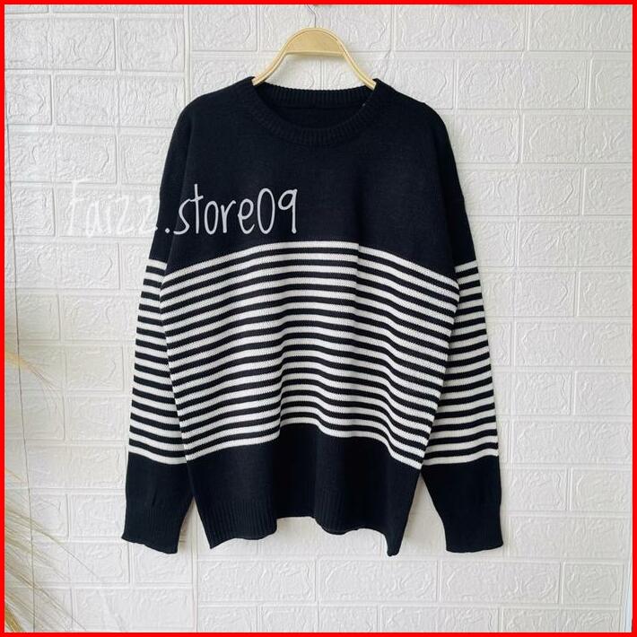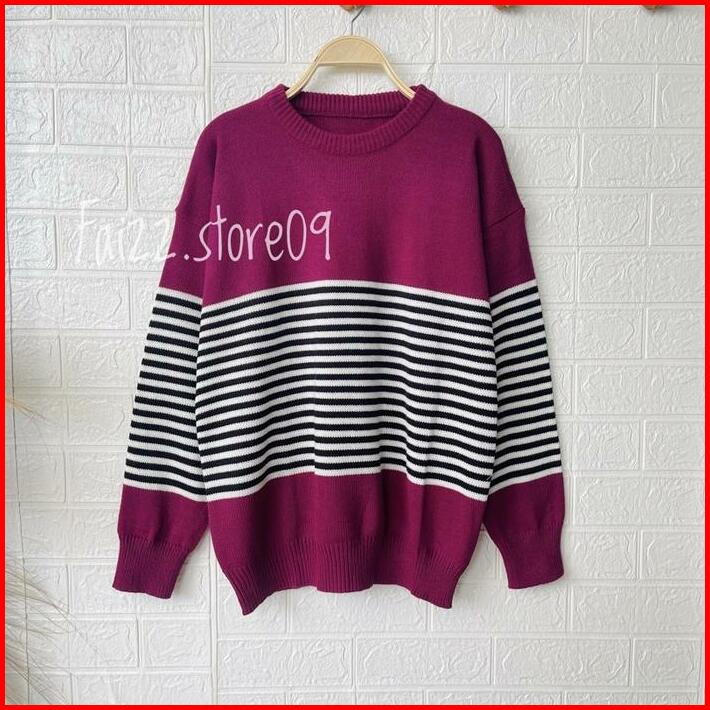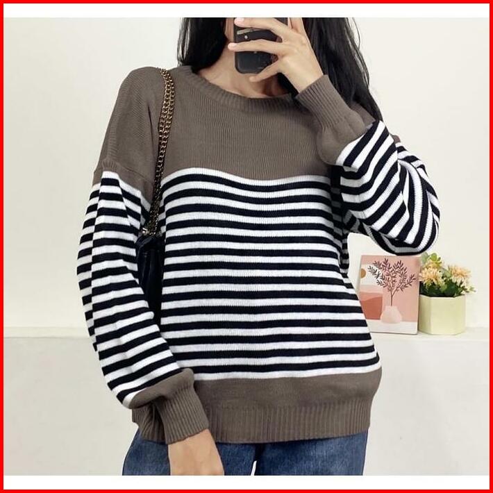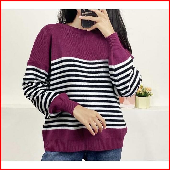 Swedy Sweater Stripe Rajut Wanita Oversize Atasan Knitted Store09 Murah Baju Tangan Knitwear Panjang
