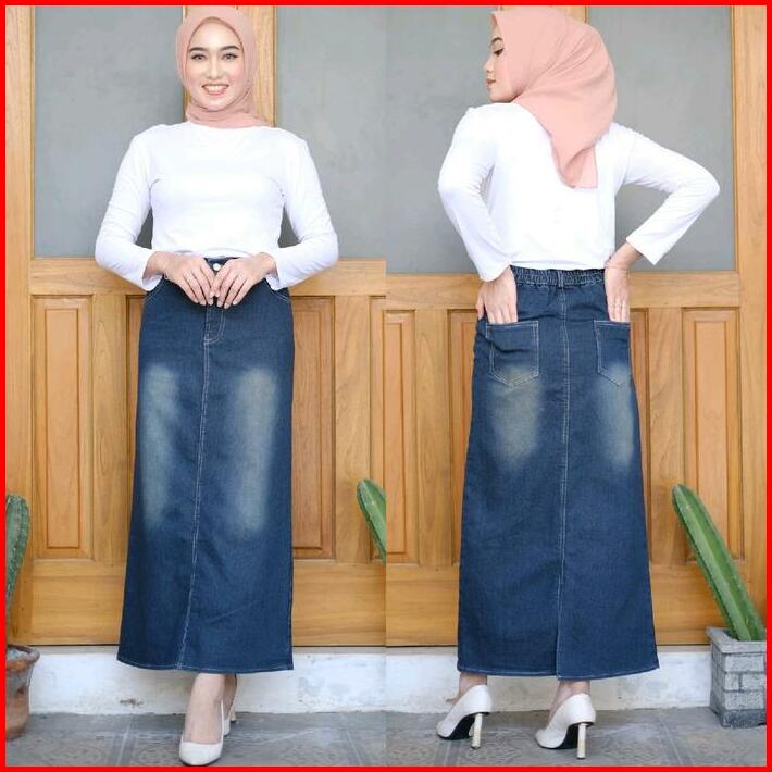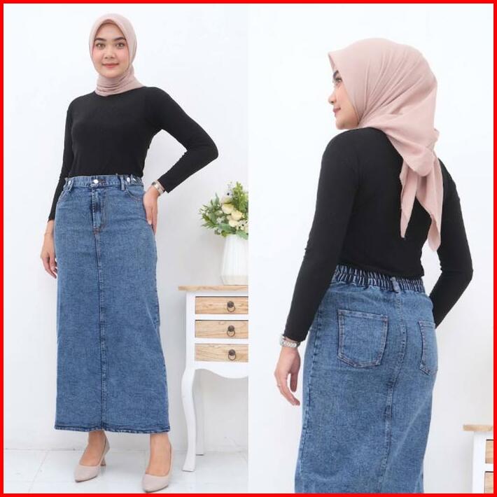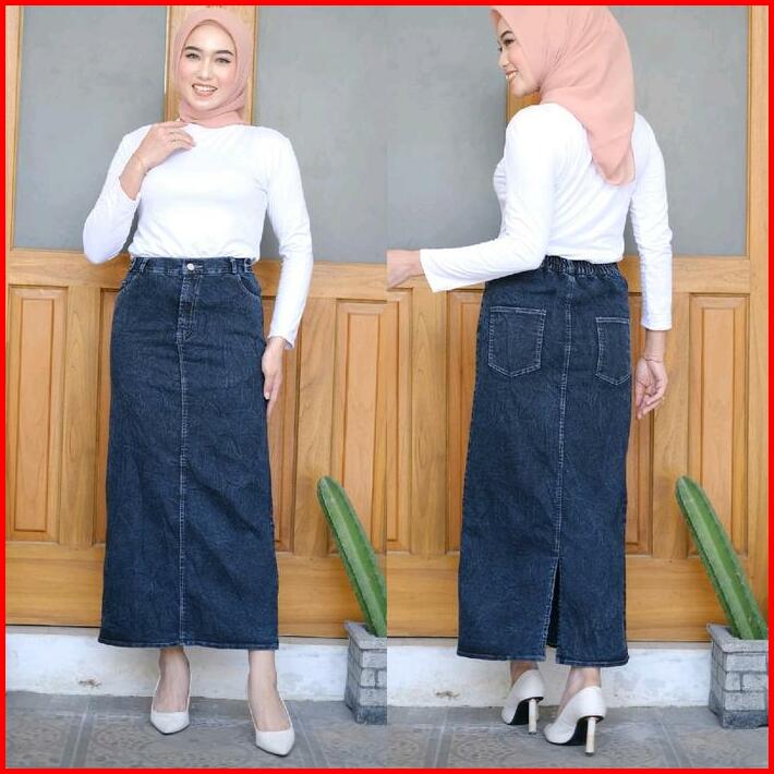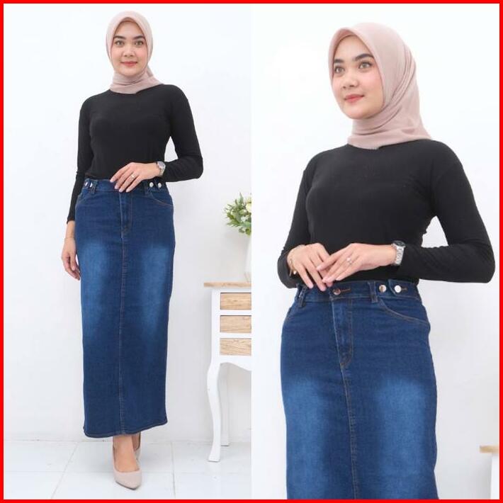 Rok Jeans Strech Maxi Panjang Afika Span Kancing Tebal Dan Ngaret