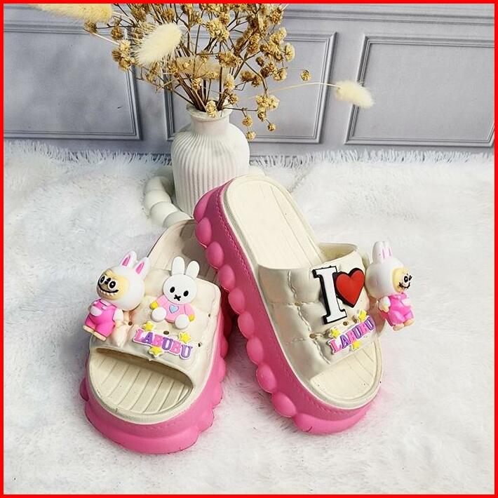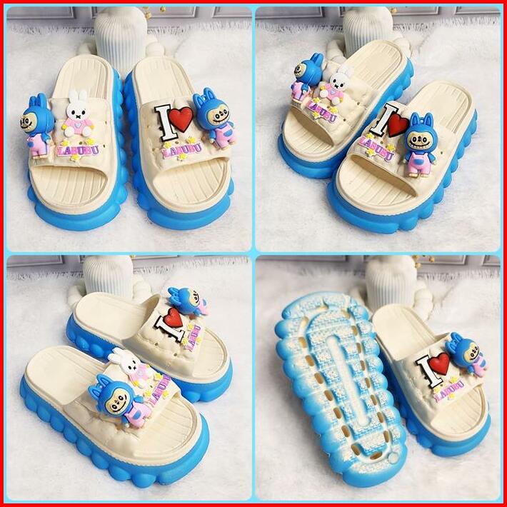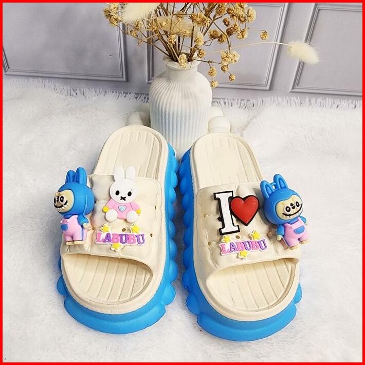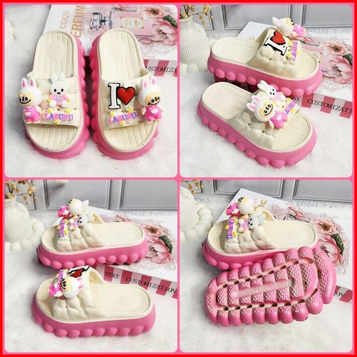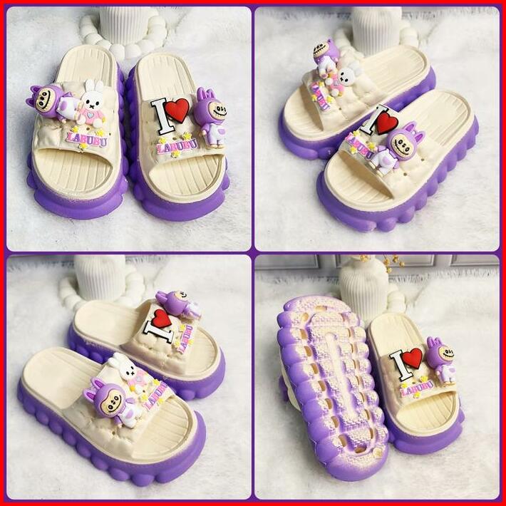 Sandal Selop Puffy Labubu Sendal Slop Anak Perempuan Labubu I Love You Pop-pop Anti Licin