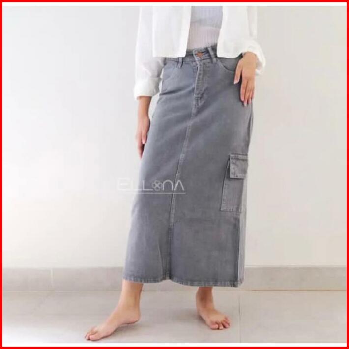 Lyra Cargo Skirt Basic Rok Jeans Panjang Highwaist Cargo Wanita Casual Dewasa