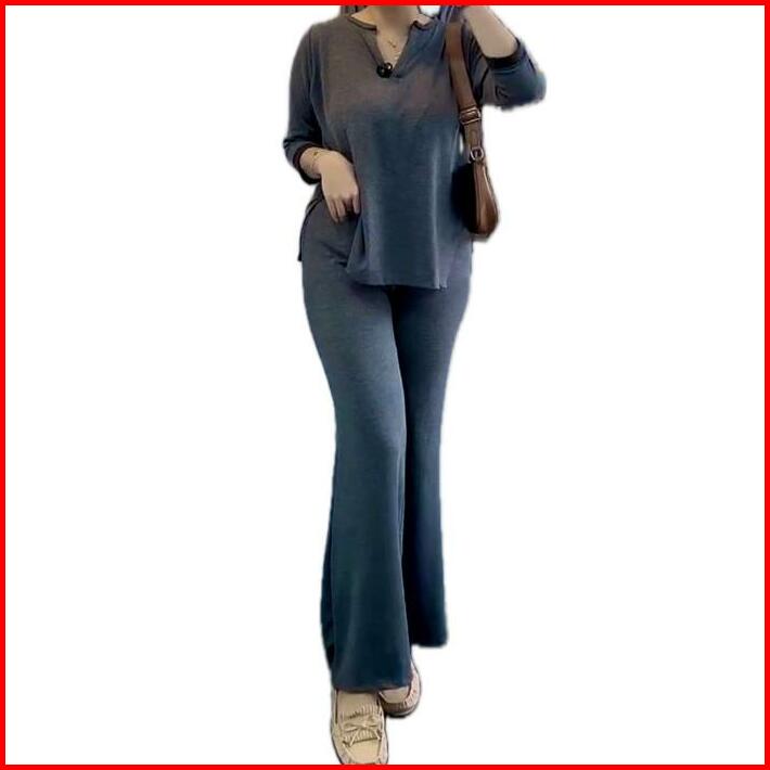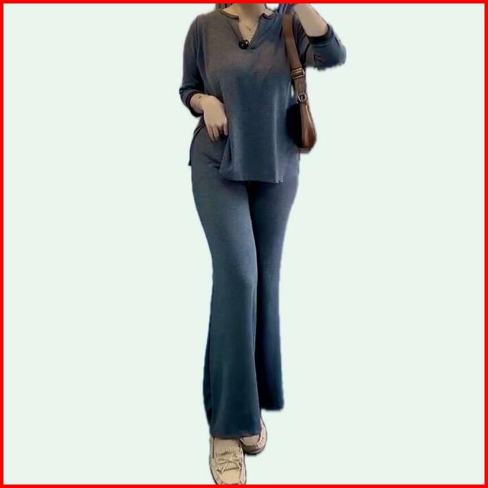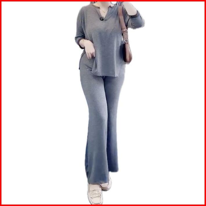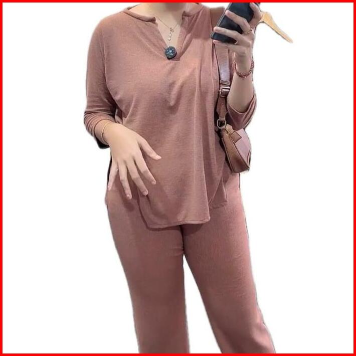 One Set Rib Melaa Tangan Panjang Celana Cutbray