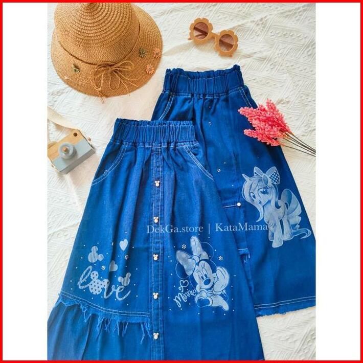Rok Jeans Panjang Anak Perempuan Littlepony Minnie Mouse Rok Muslim Anak Perempuan Rok Jeans Panjang