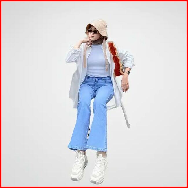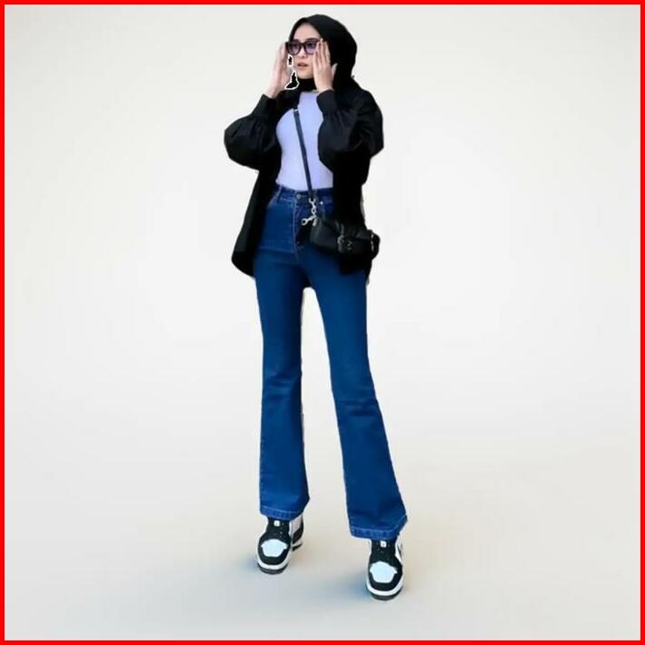Sunday Celana Jeans Cutbray Strech Auto Jenjang Panjang Wanita