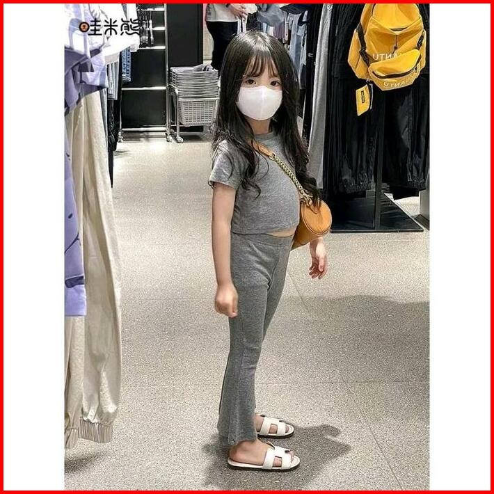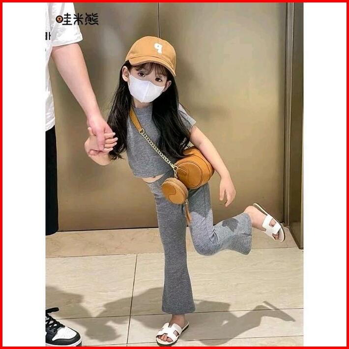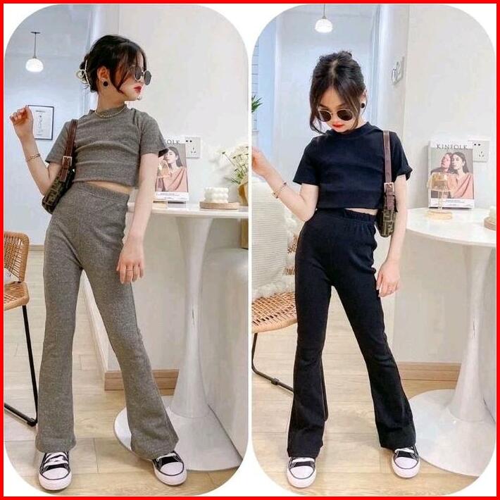 Js27 One Set Setelan Baju Anak Perempuan Celana Cutbray Crop Polos
