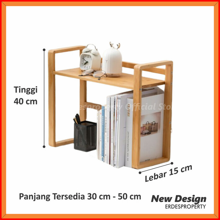 Rak Tempat Buku Hiasan Meja Asli Kayu Lebar 15 Cm Aesthetic Serbaguna