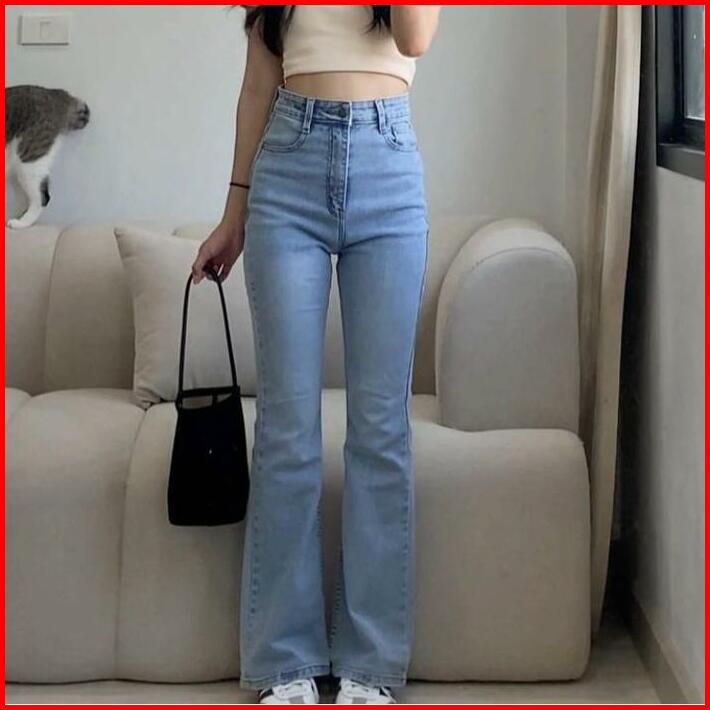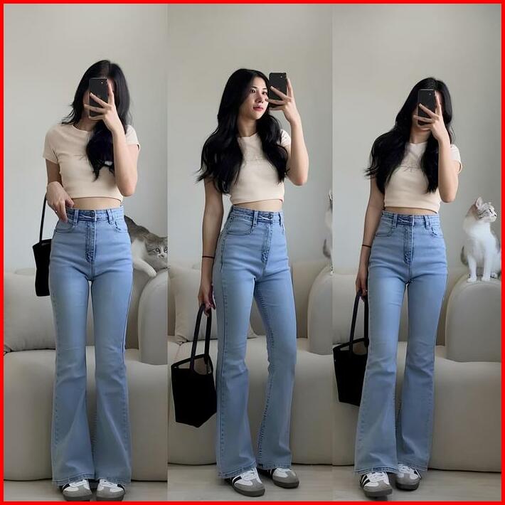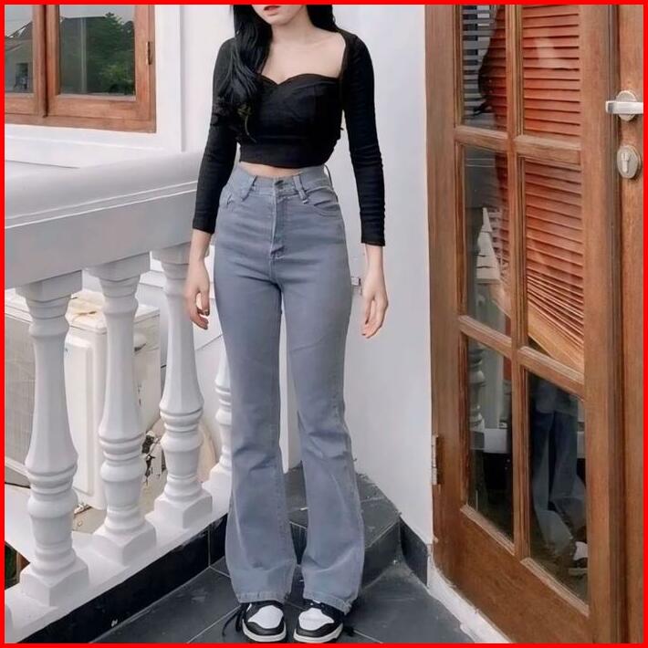 Celana Highwaist Cutbray Jeans Wanita Strecth Kekinian Keren