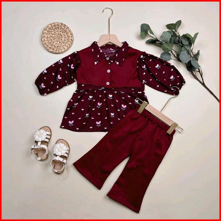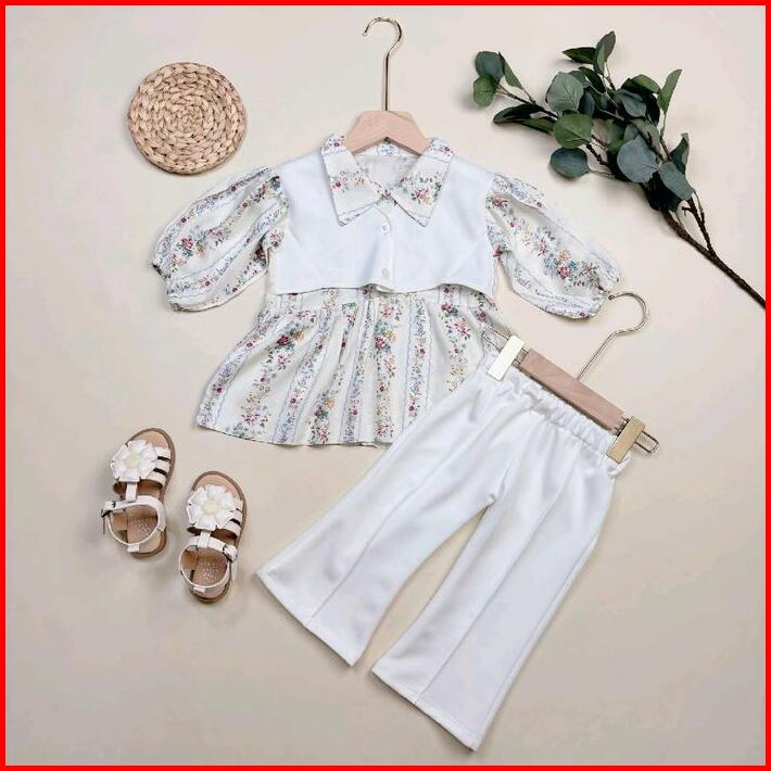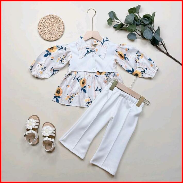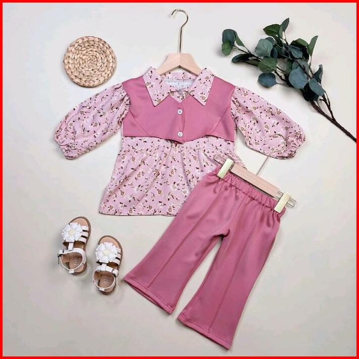 Ataya One Set-setelan Celana Scuba Cutbray Dan Atasan Rayon Untuk Usia 1-10 Tahun