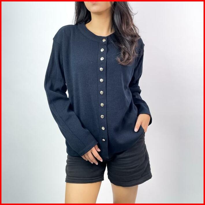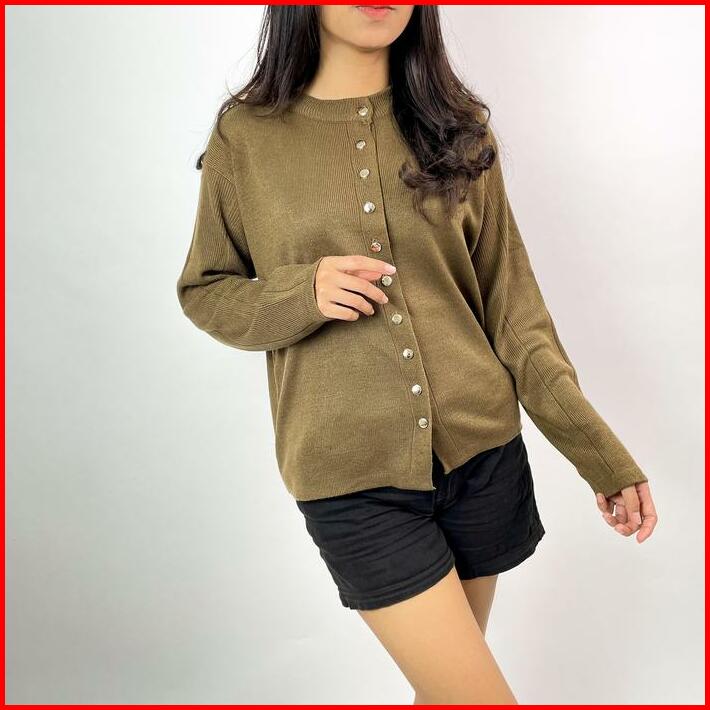 Alzi Kannara Knitwear Cardigan Rajut Premium Atasan Wanita Lengan Panjang Garis Aesthetic Baju Kardigan Outer Tebal