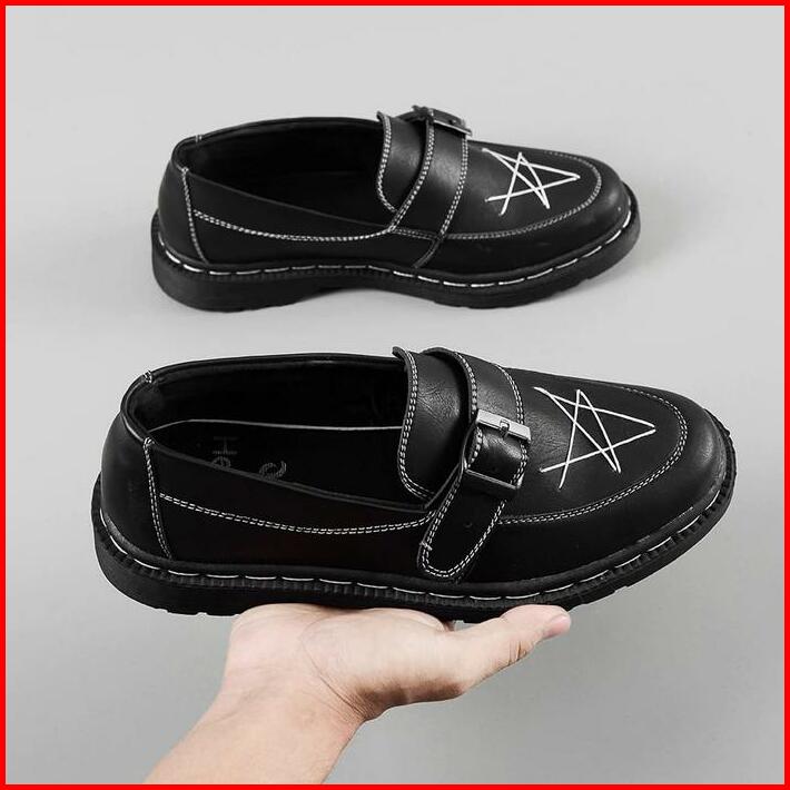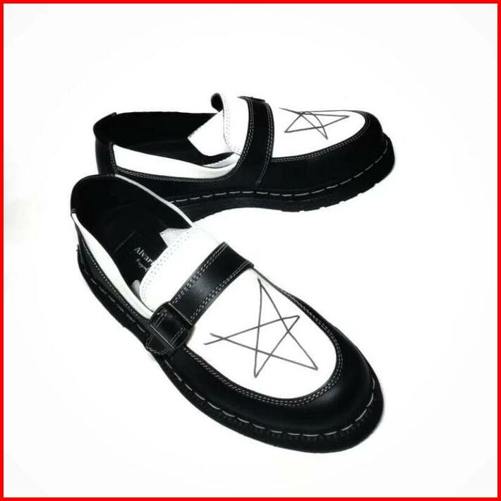 Almairah Sepatu Penny Loafers Docmart Bintang Hitam Putih Vintage Pria Wanita Formal Casual Martens Flat Shoes Sneakers