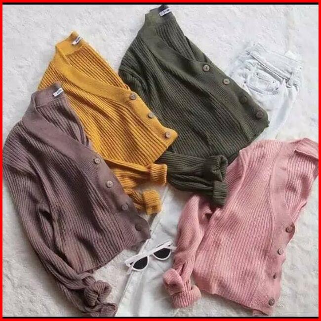 Willi Cardy Cardi Crop Rajut Wanita Knitwear Atasan Kardigan Crop Top Tebal Baju Kancing Panjang Tangan Fit Nyaman Overs