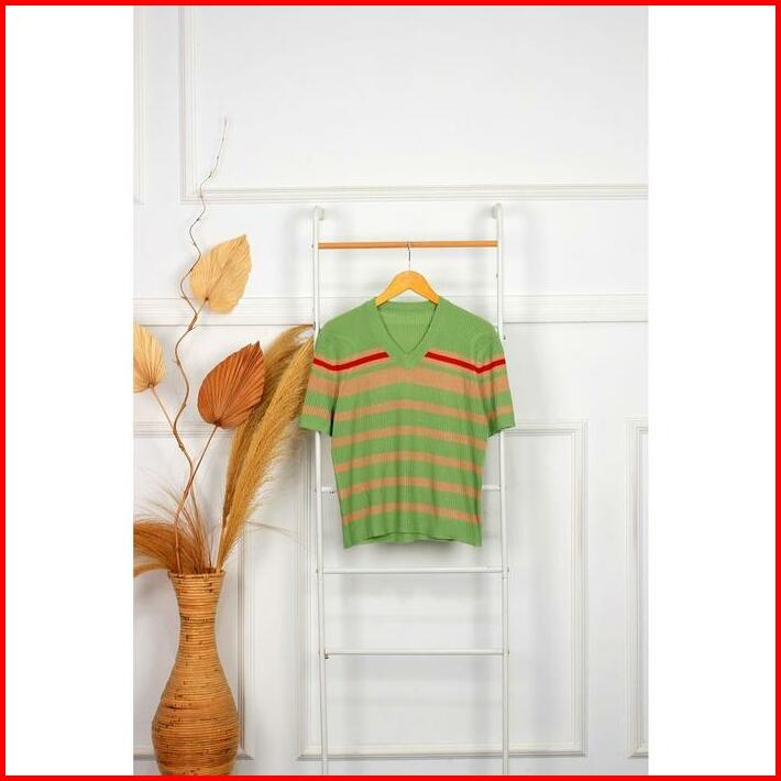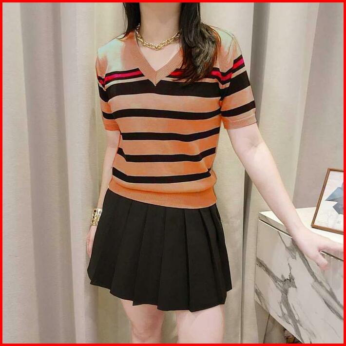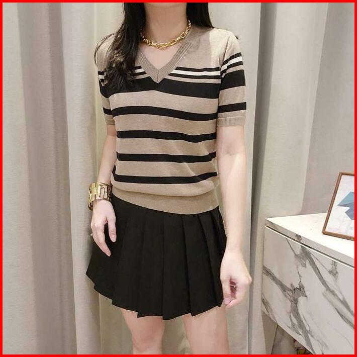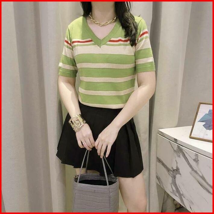 Mamado Vente Top Stripe Knitwear Atasan Rajut Wanita Premium Vente Top Salur Baju Atasan Remaja Lembut Tangan Pendek Dew