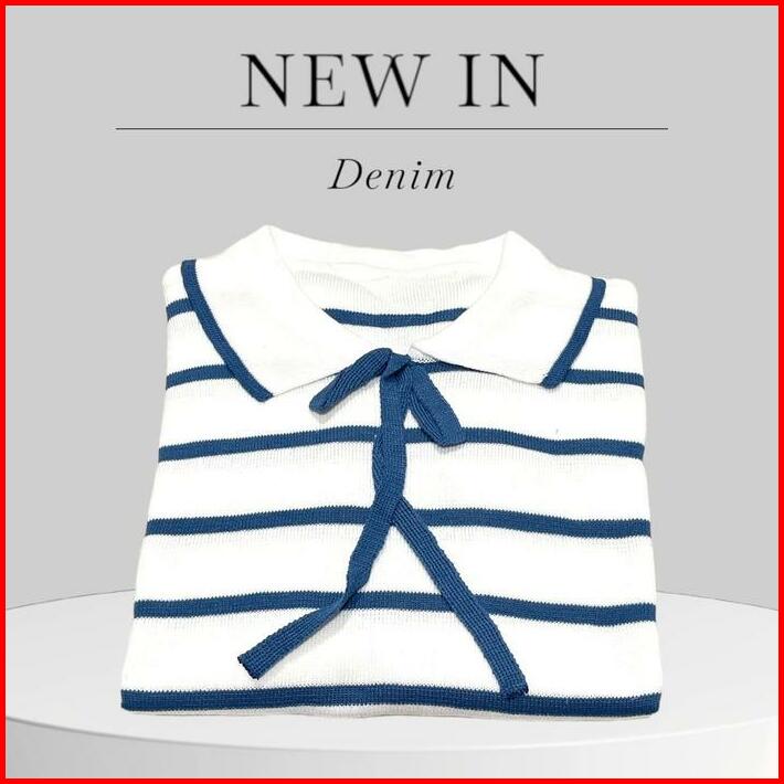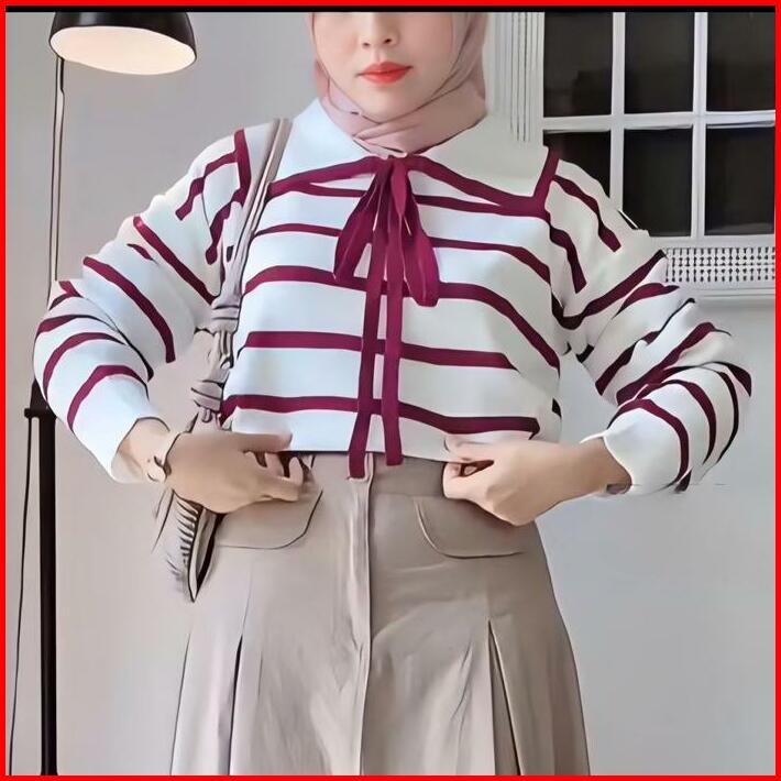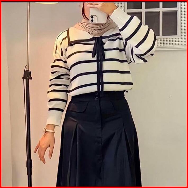 Eily Atasan Wanita Rajut Korea Motif Garis Kerah Lengan Panjang Baju Knitwear