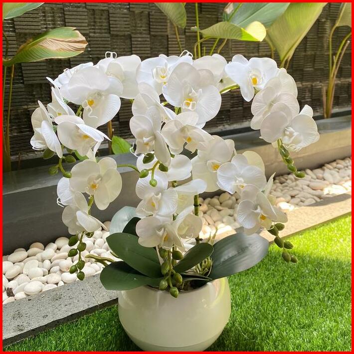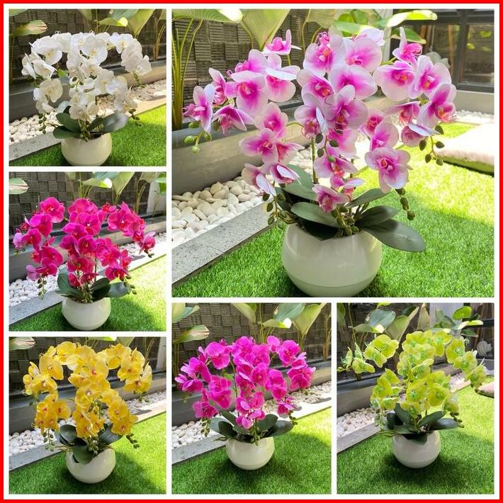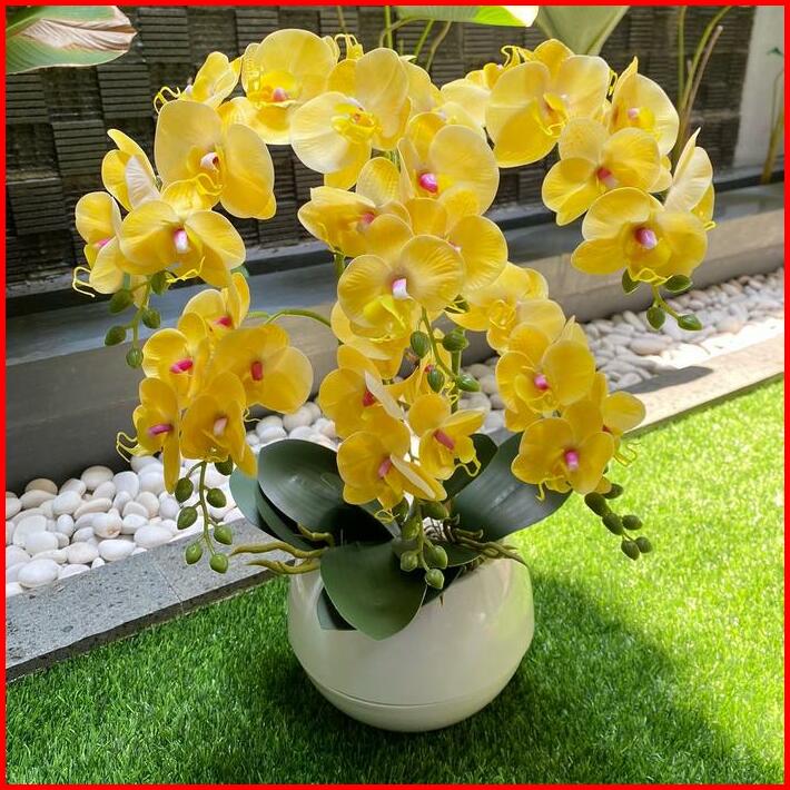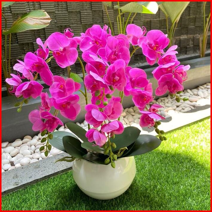 Anggrek Latex Film Premium Tanaman Bunga Hias Meja Tamu Meja Ruangan 6 Cabang Vas Bola