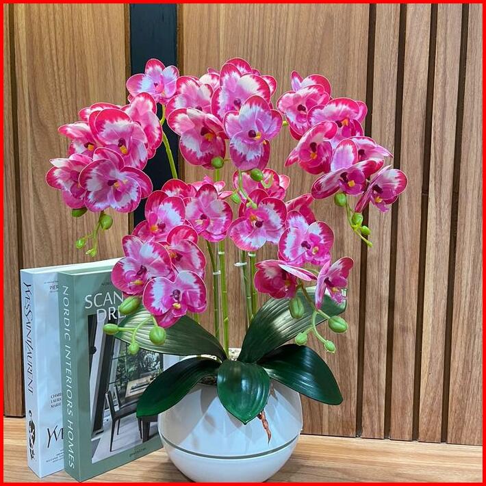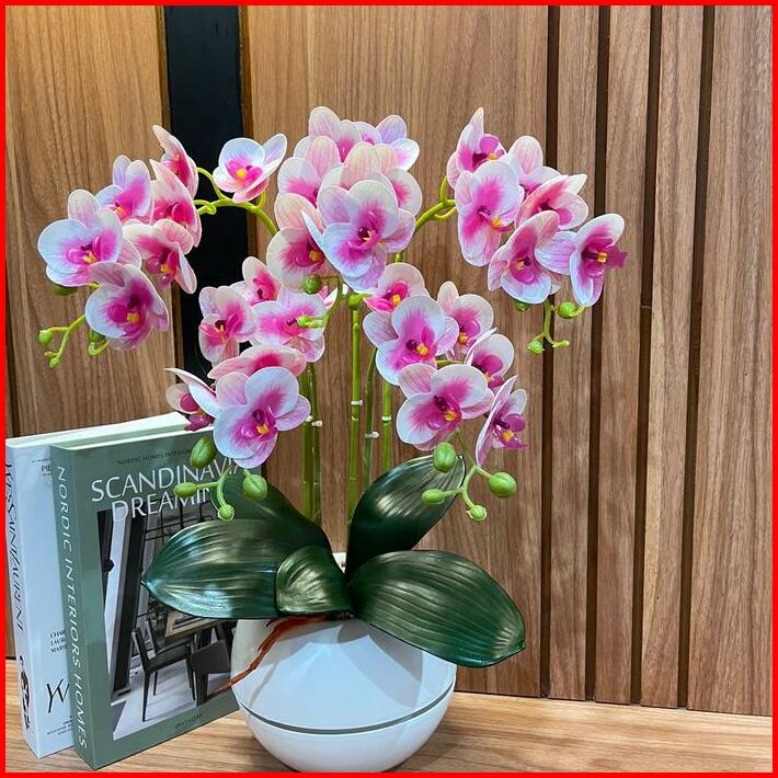 Anggrek Latek K7 5 Cabang Vas Bola Mewah Plastik Bunga