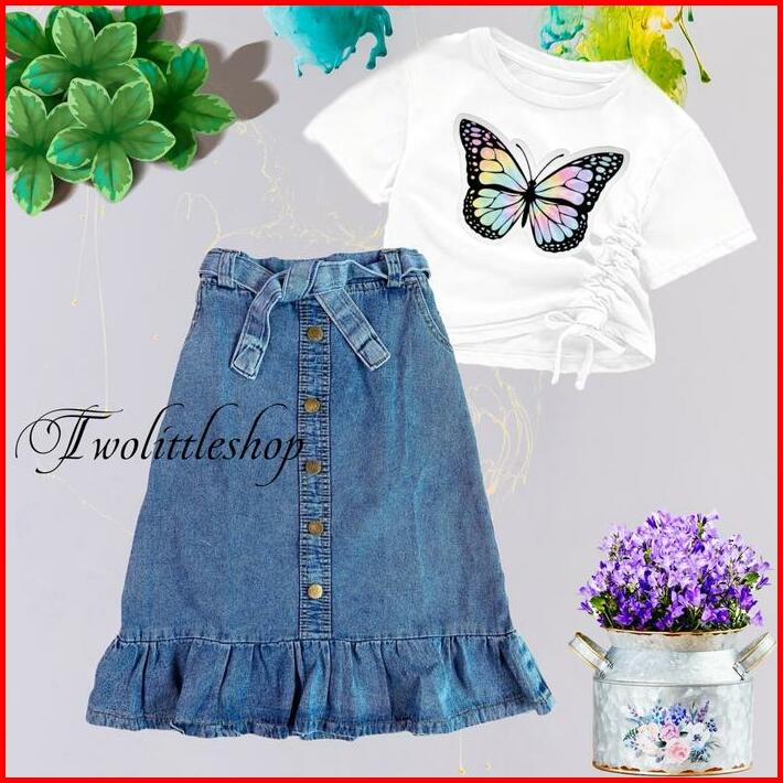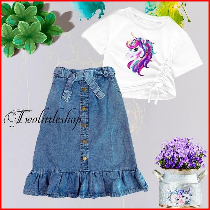 Setelan Rok Jeans Anak Perempuan Setelan Rok Tali Anak